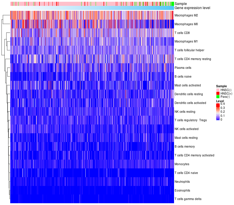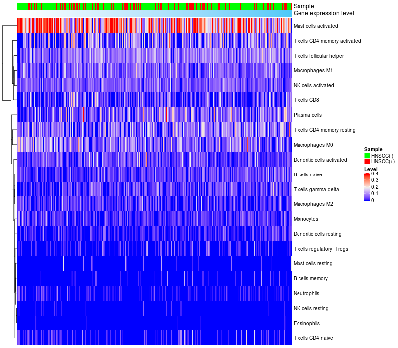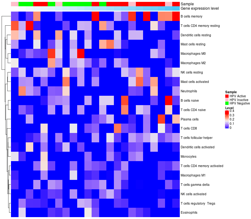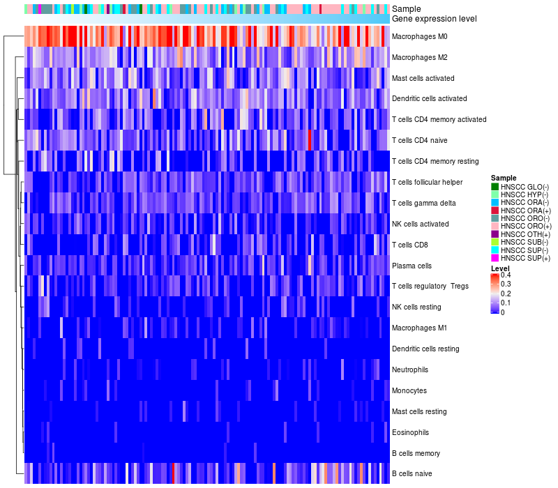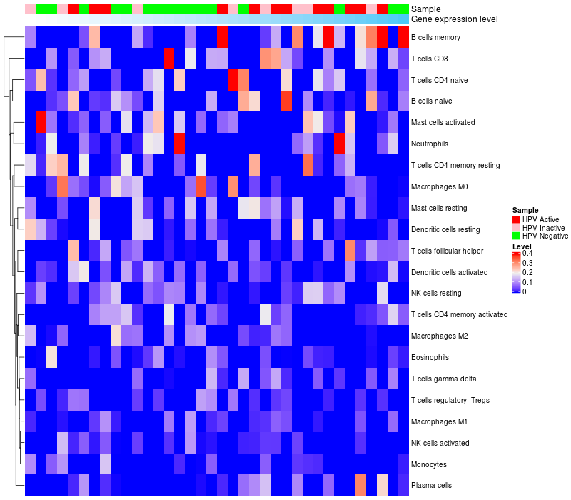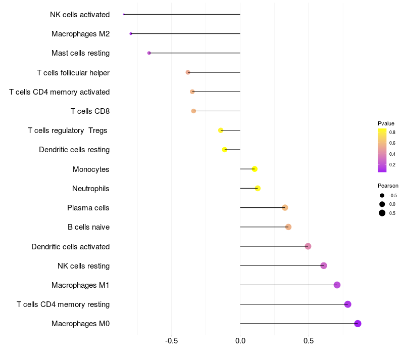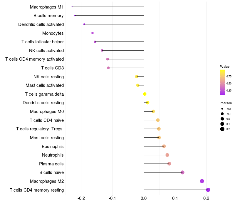 Lollipop of USP6NL expression and immune infiltrating cell level correlation result in HPV+ samples