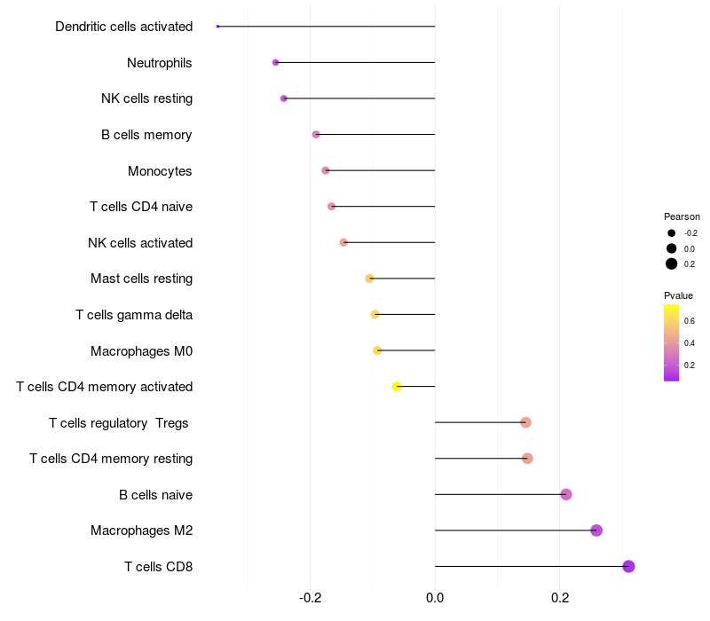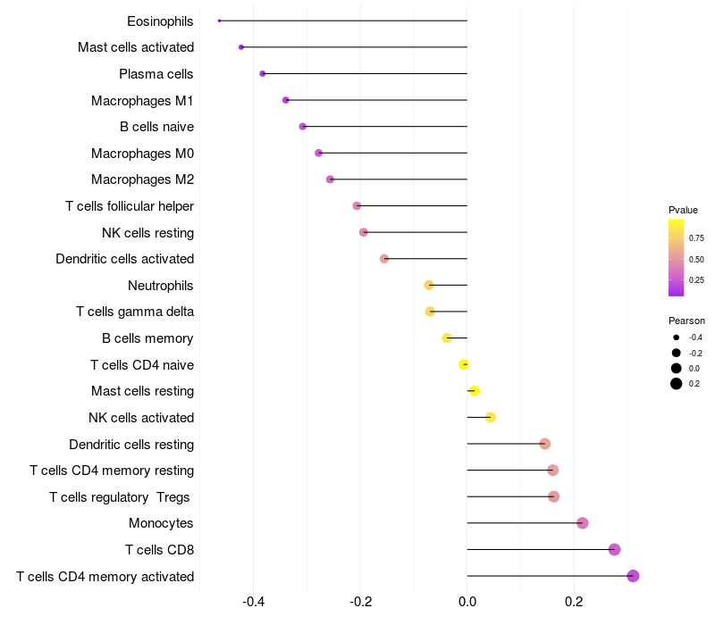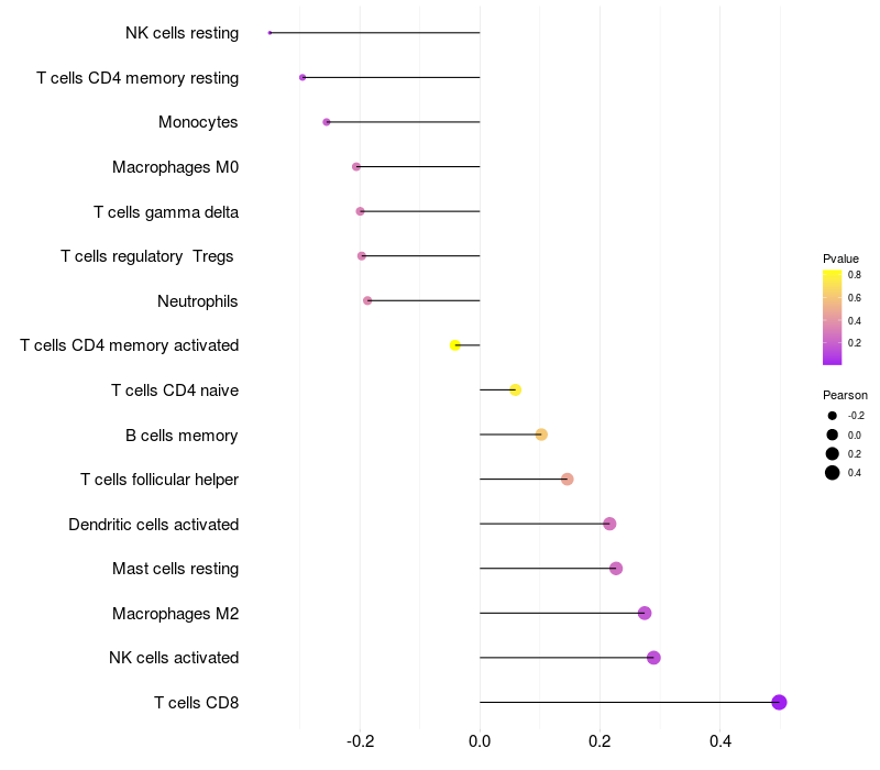 Lollipop of VAMP4 expression and immune infiltrating cell level correlation result in HTLV1+ samples