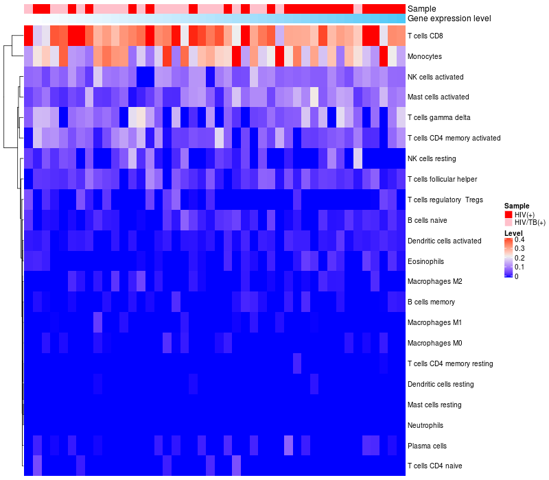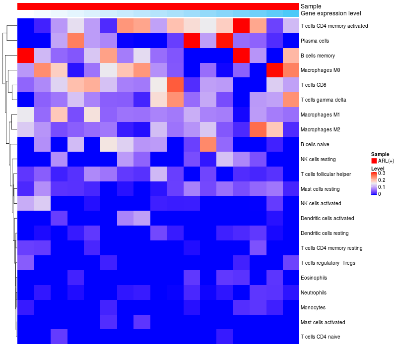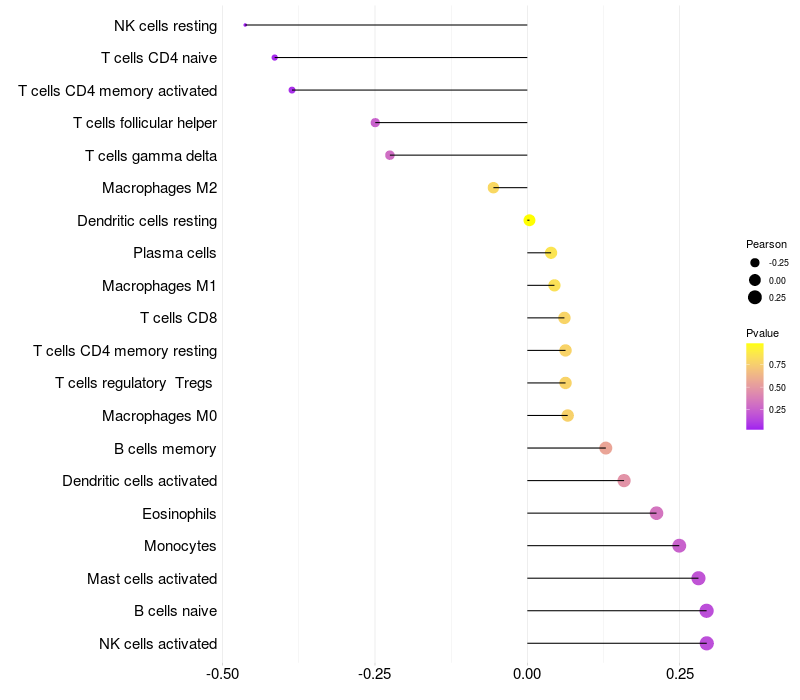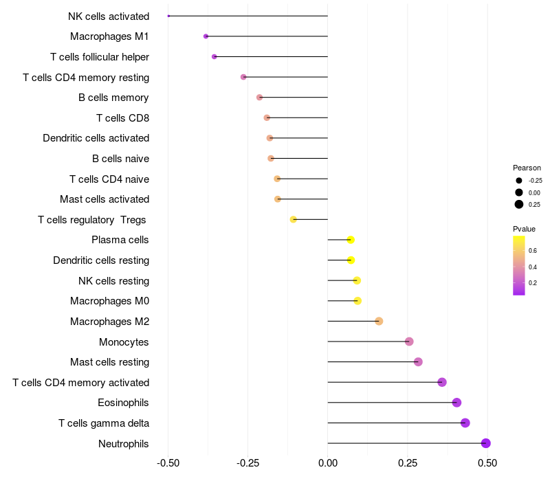 Relationship between gene expression and immune infiltrating cell level