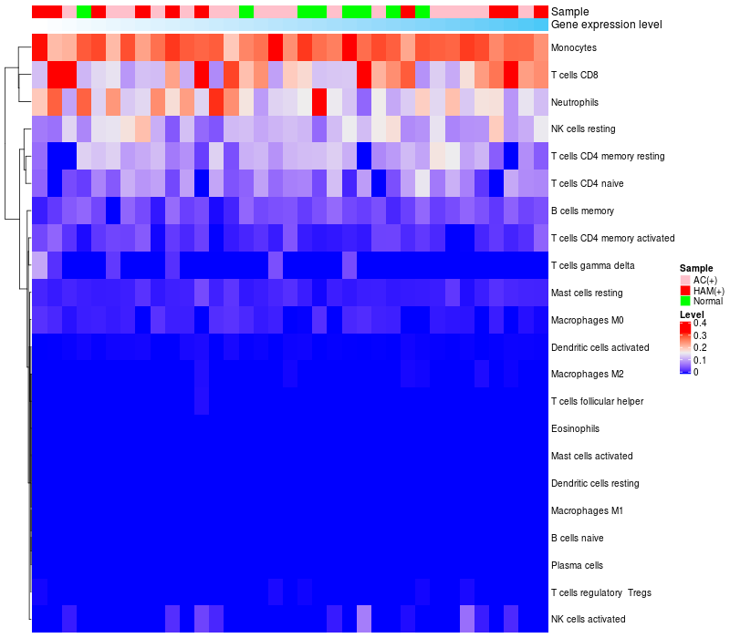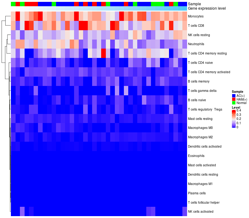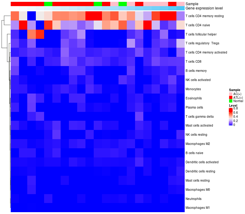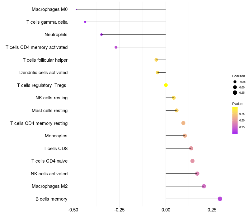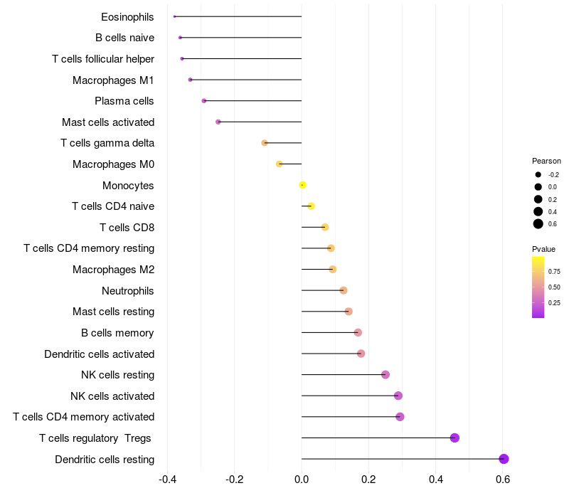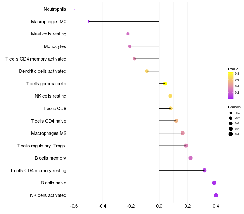 Lollipop of VAT1 expression and immune infiltrating cell level correlation result in HTLV1+ samples
