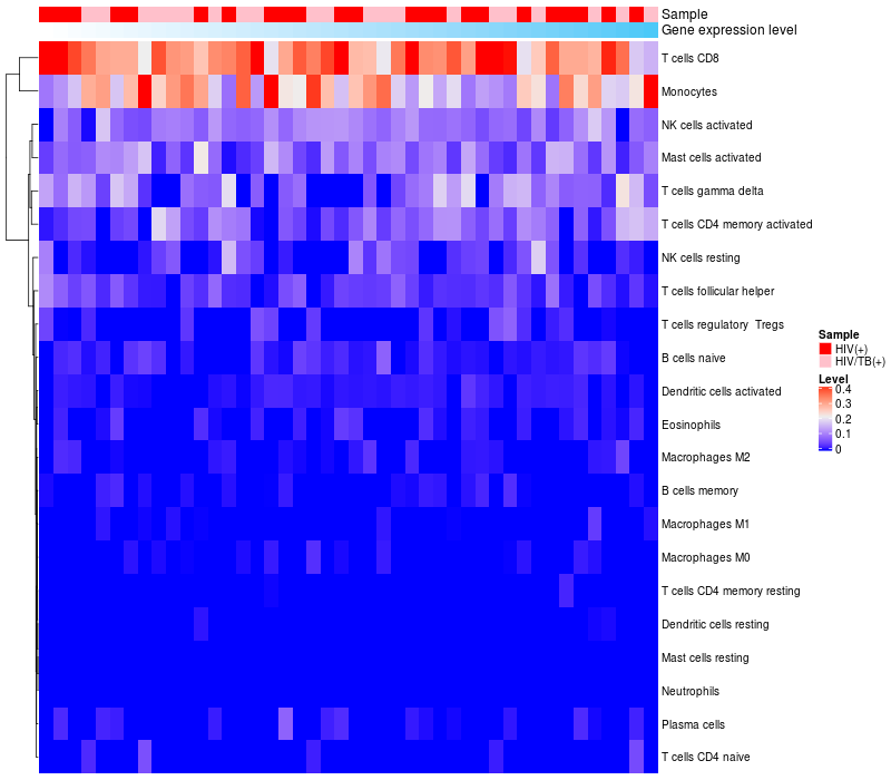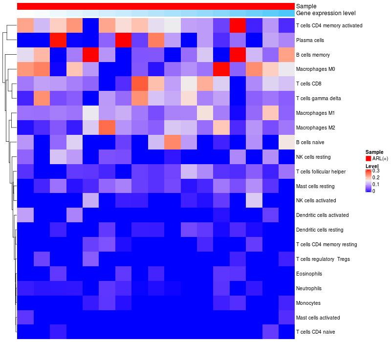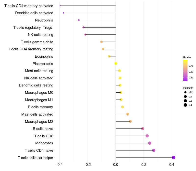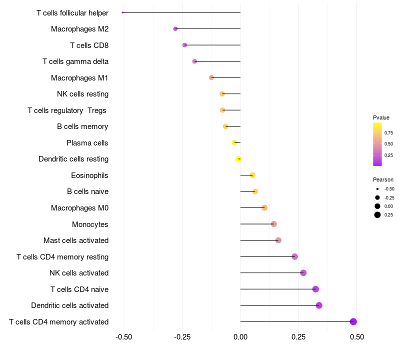 Relationship between gene expression and immune infiltrating cell level