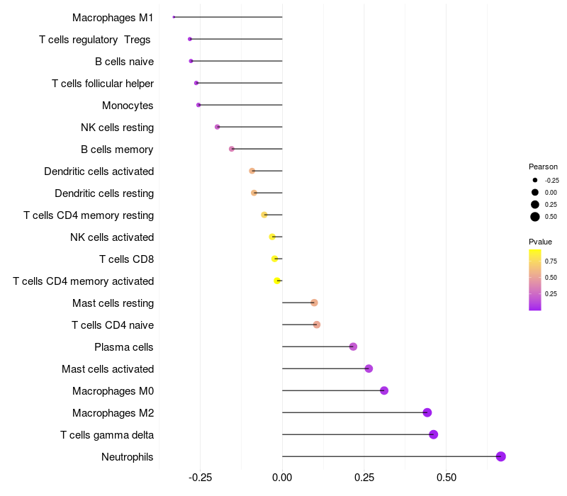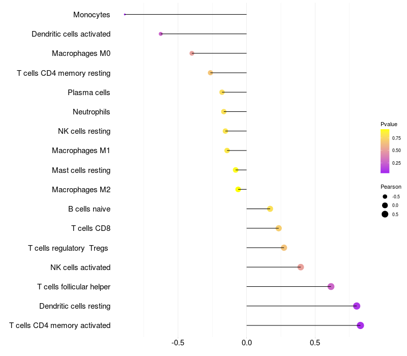 HeatMap of cell type fractions in all samples Lollipop of VCX expression and immune infiltrating cell level correlation result in HPV+ samples