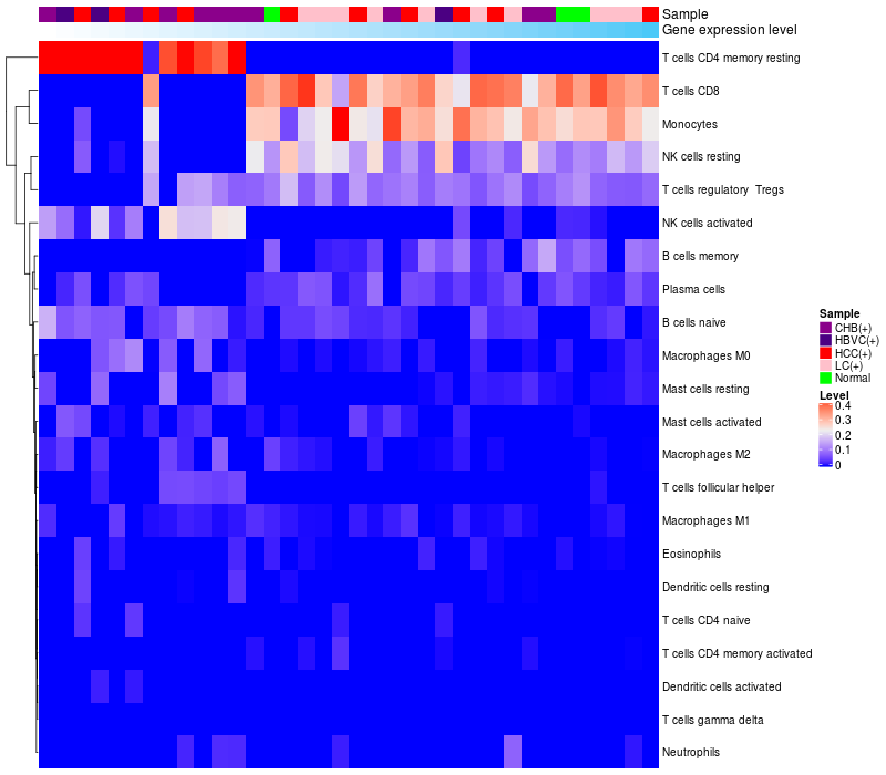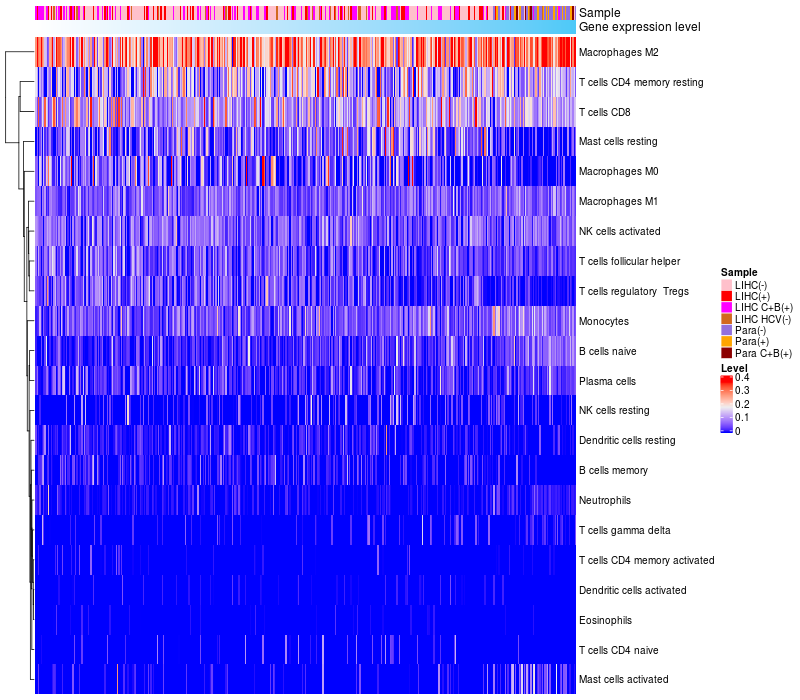 Liver hepatocellular carcinoma HCV (HBV+)(86), Liver hepatocellular carcinoma HCV (HBV-)(19), Liver hepatocellular carcinoma (HBV+)(209), Liver hepatocellular carcinoma (HBV+)(60), Paracancerous HCV (HBV+)(4), Paracancerous (HBV-)(28), Paracancerous (HBV+)(18) |