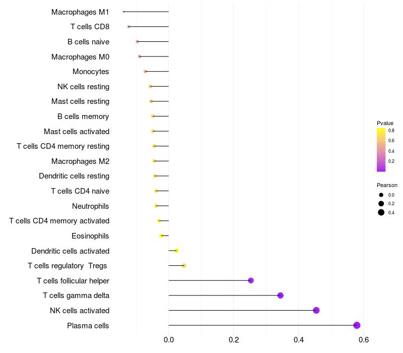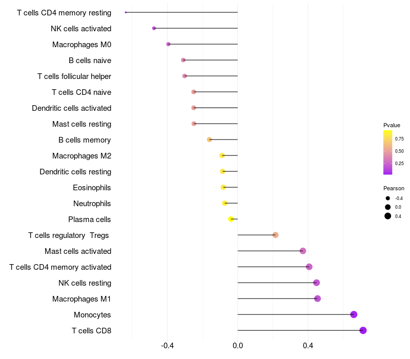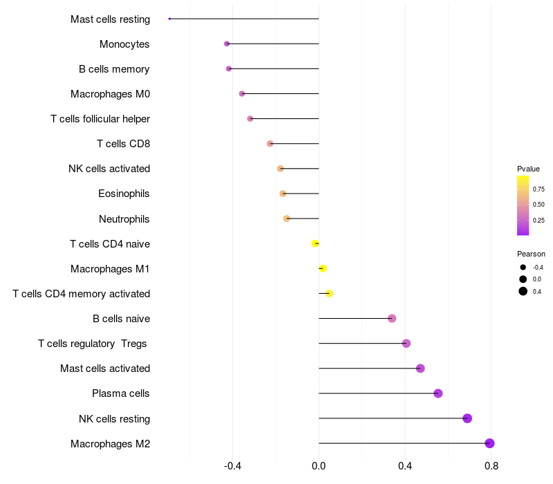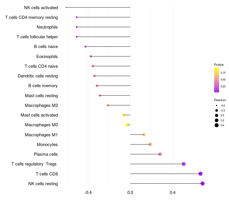 Lollipop of VIPR2 expression and immune infiltrating cell level correlation result in HBV+ Liver cirrhosis samples