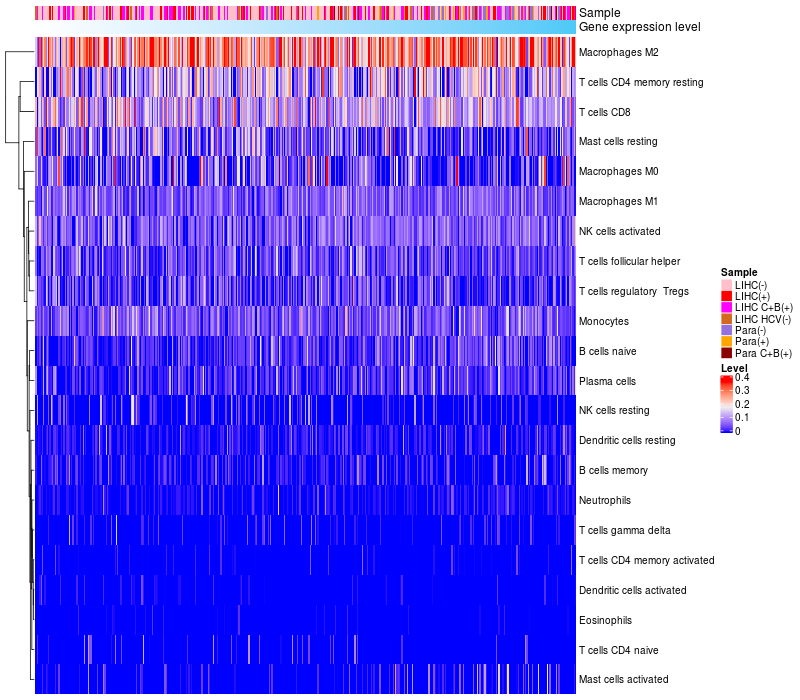 Liver hepatocellular carcinoma HCV (HBV+)(86), Liver hepatocellular carcinoma HCV (HBV-)(19), Liver hepatocellular carcinoma (HBV+)(209), Liver hepatocellular carcinoma (HBV+)(60), Paracancerous HCV (HBV+)(4), Paracancerous (HBV-)(28), Paracancerous (HBV+)(18) |