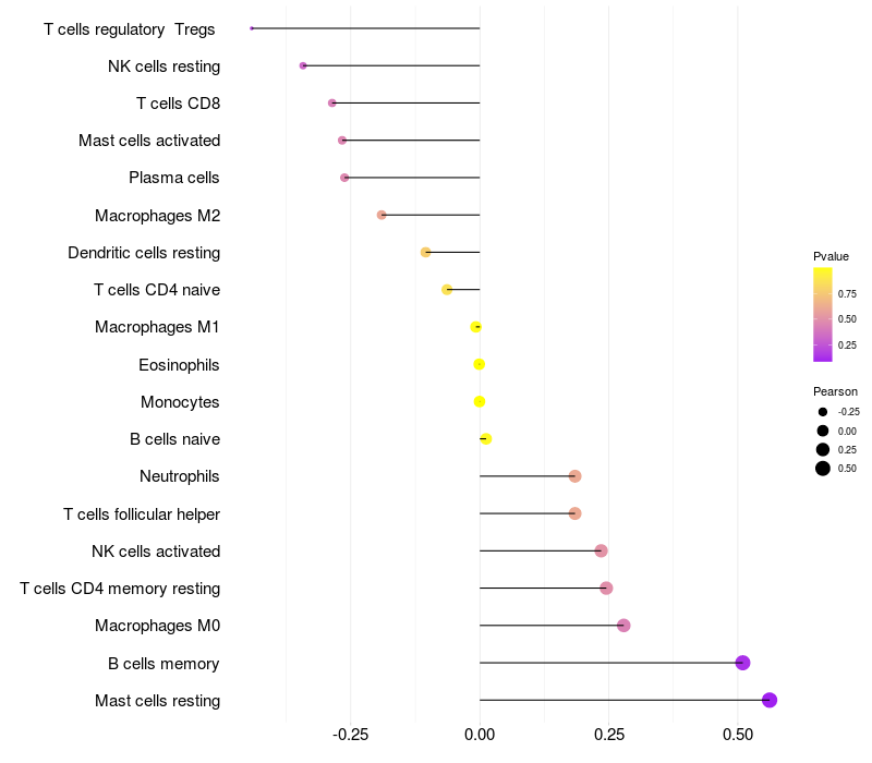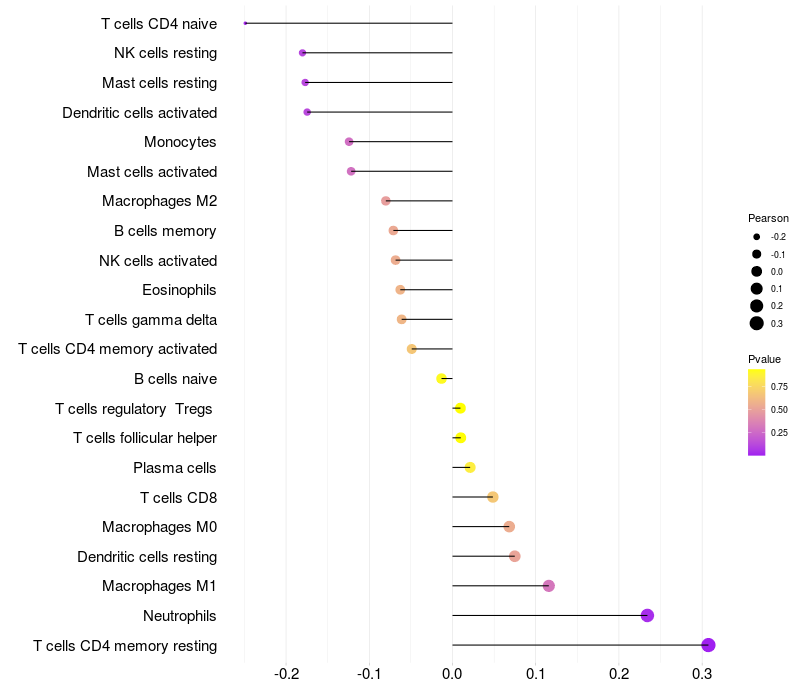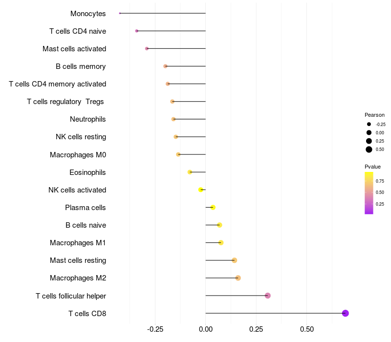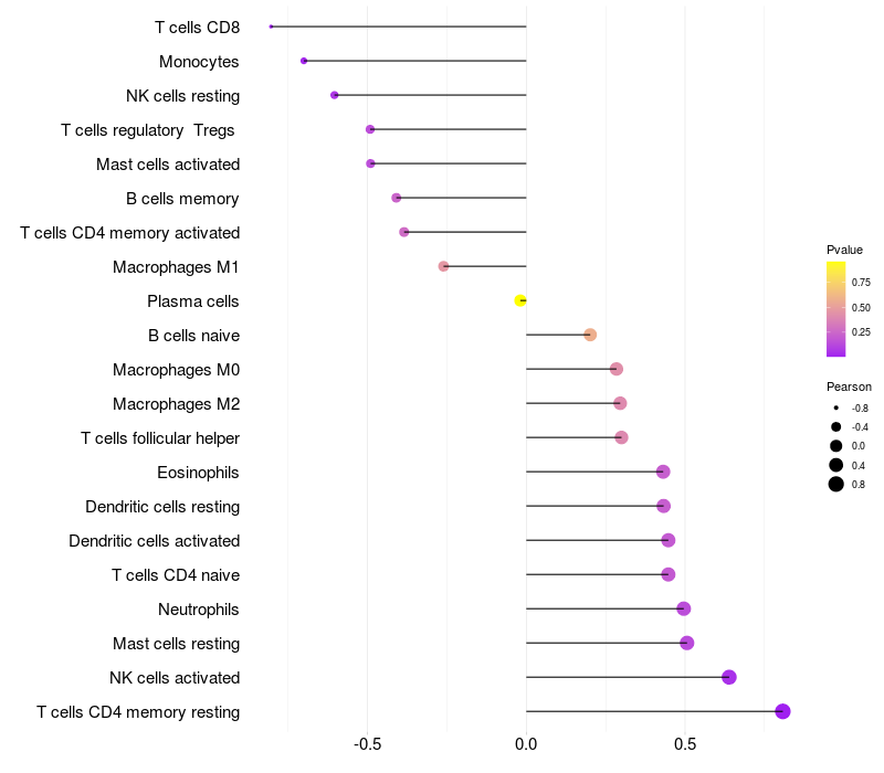 Lollipop of VPS13A expression and immune infiltrating cell level correlation result in HBV+ Liver cirrhosis samples