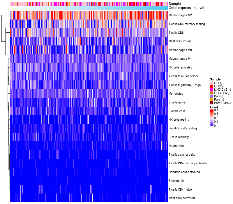 Liver hepatocellular carcinoma HCV (HBV+)(86), Liver hepatocellular carcinoma HCV (HBV-)(19), Liver hepatocellular carcinoma (HBV+)(209), Liver hepatocellular carcinoma (HBV+)(60), Paracancerous HCV (HBV+)(4), Paracancerous (HBV-)(28), Paracancerous (HBV+)(18) |