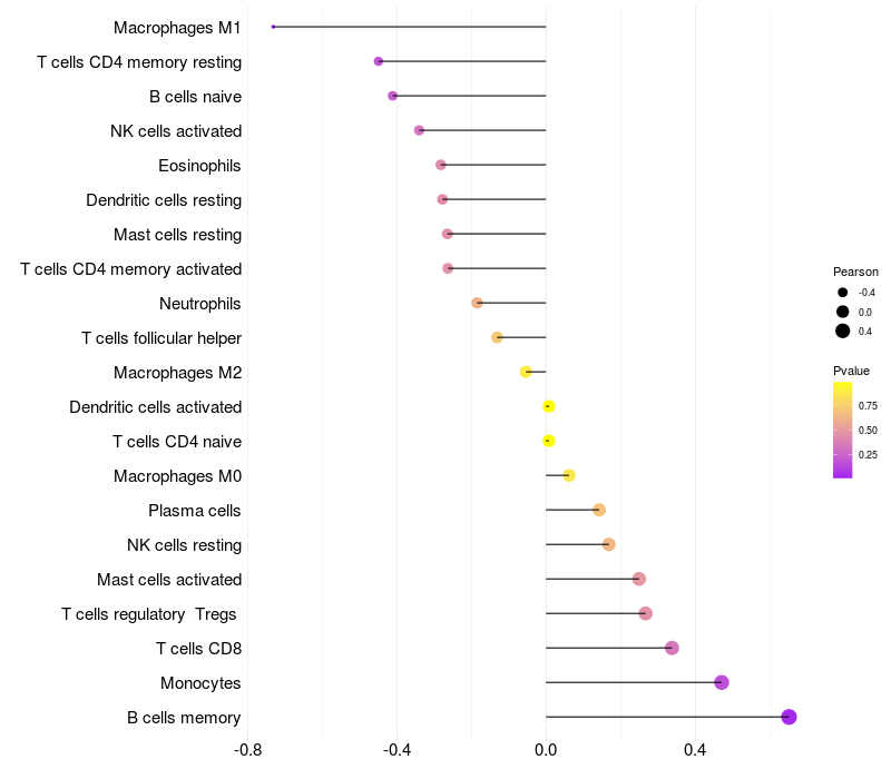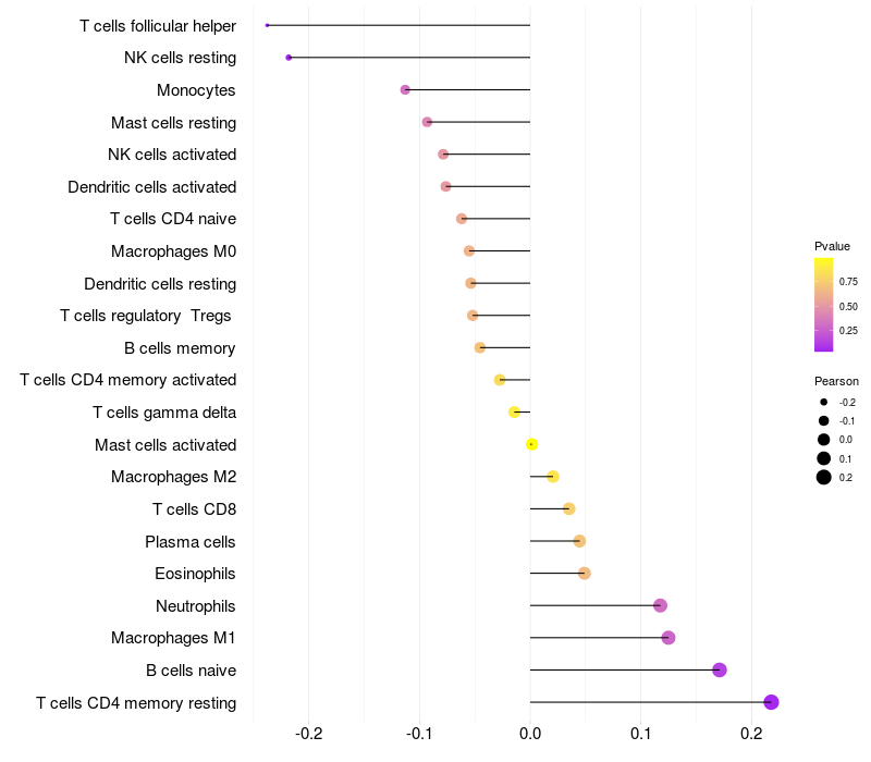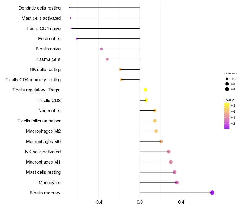 Lollipop of VPS13C expression and immune infiltrating cell level correlation result in HBV+ Liver cirrhosis samples
