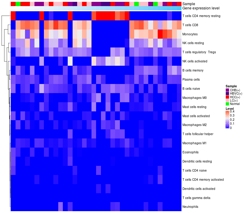 Relationship between gene expression and immune infiltrating cell level