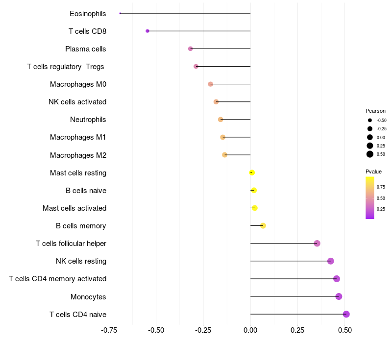 Lollipop of VPS13C expression and immune infiltrating cell level correlation result in HBV+ Chronic HBV (CHB) infection samples