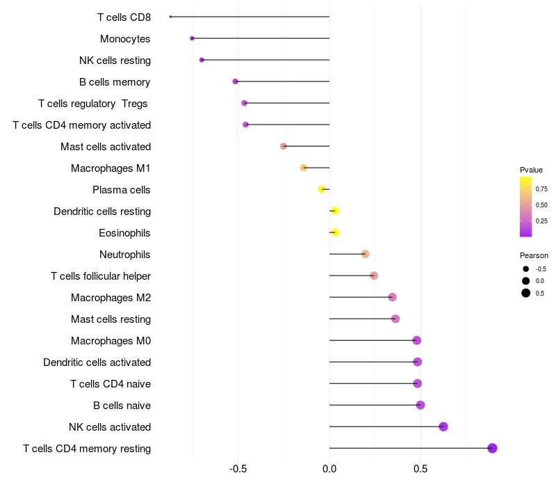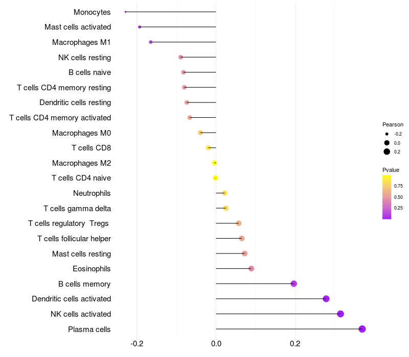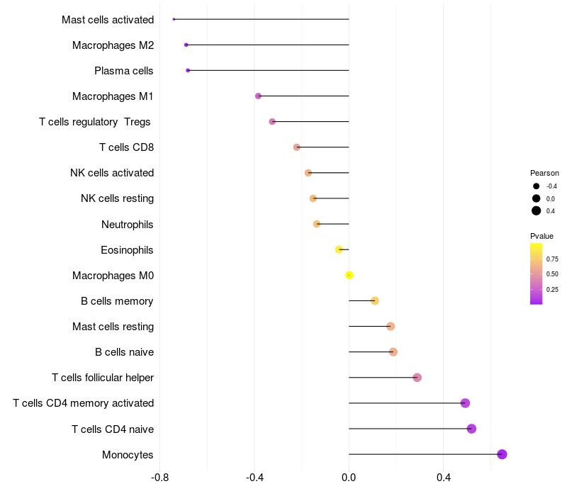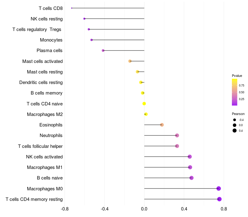 Lollipop of VPS39 expression and immune infiltrating cell level correlation result in HBV+ Liver cirrhosis samples