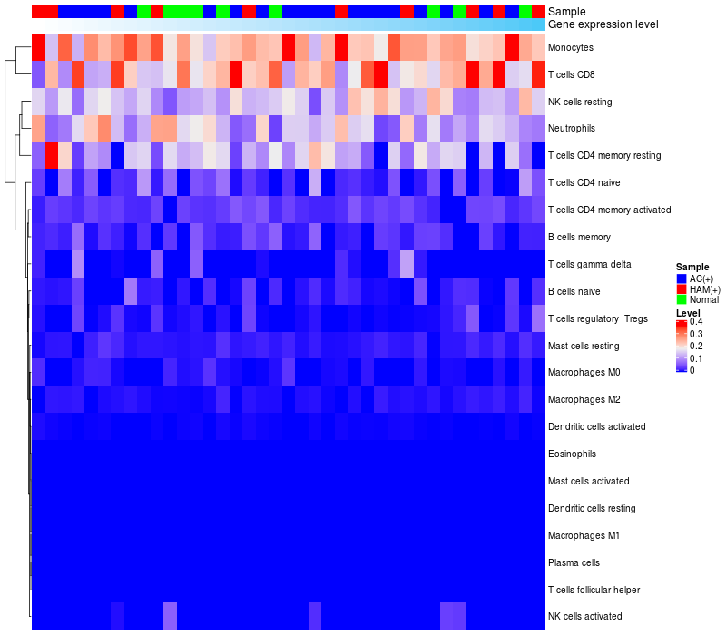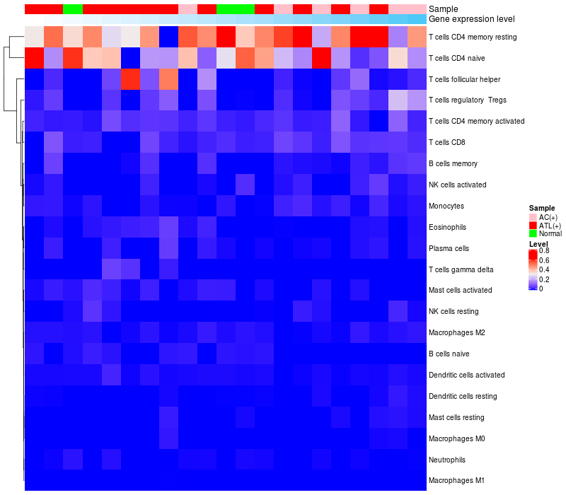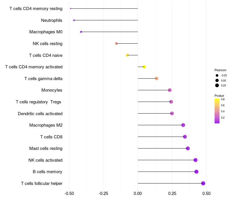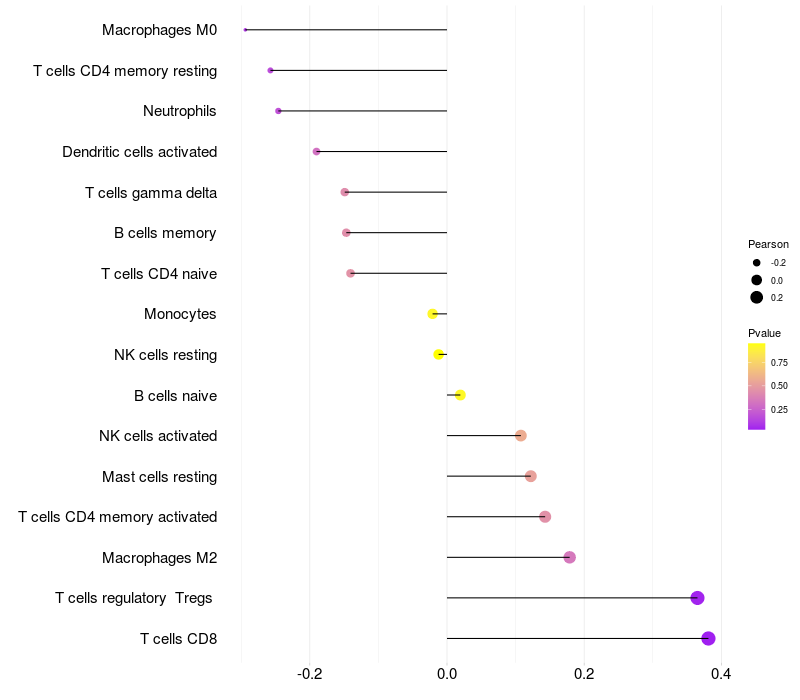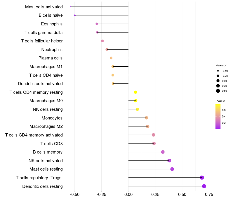 Lollipop of VPS4A expression and immune infiltrating cell level correlation result in HTLV1+ samples