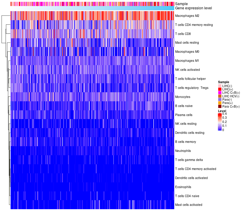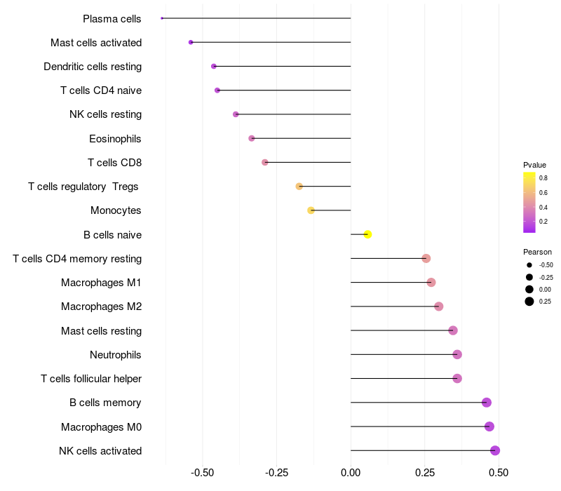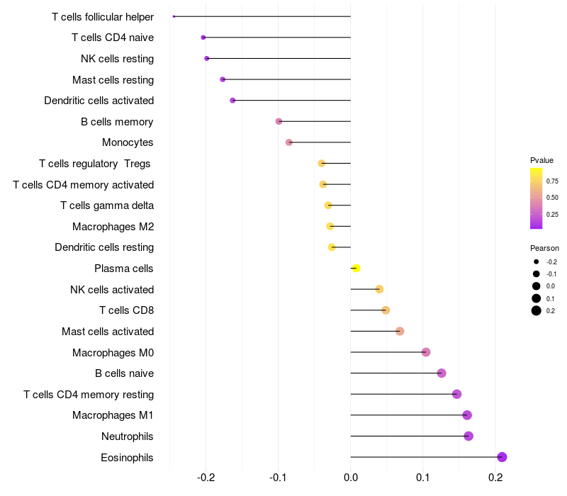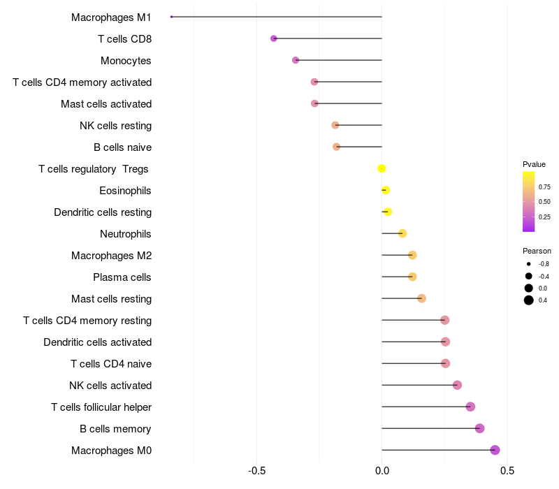Relationship between gene expression and immune infiltrating cell level