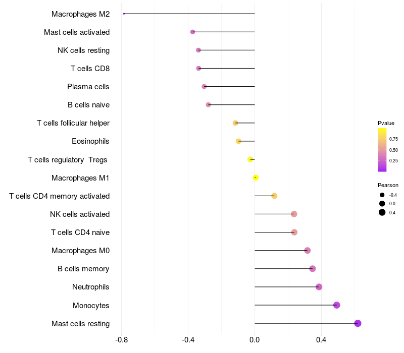 Lollipop of VPS4B expression and immune infiltrating cell level correlation result in HBV+ Liver cirrhosis samples