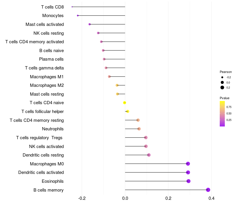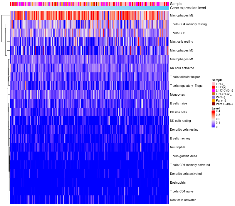 Relationship between gene expression and immune infiltrating cell level