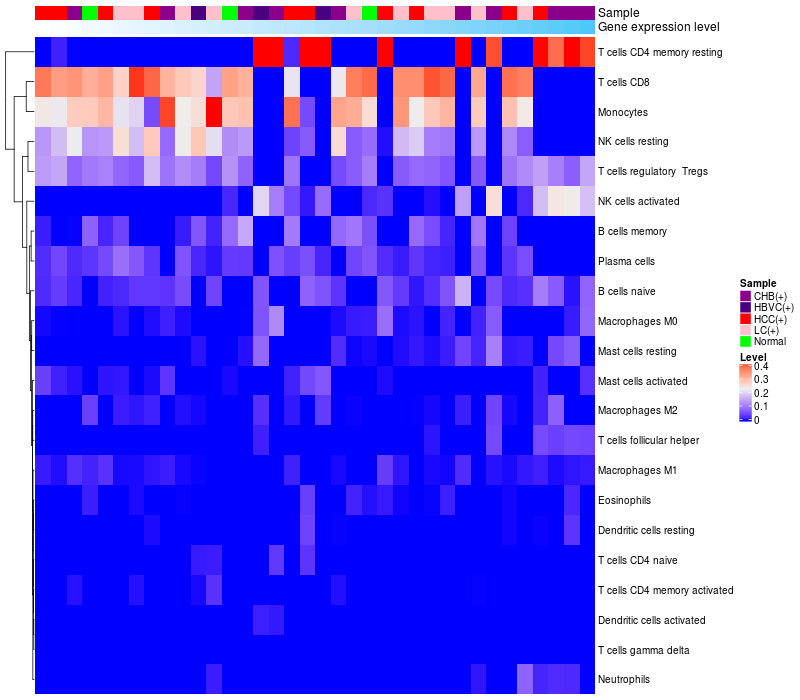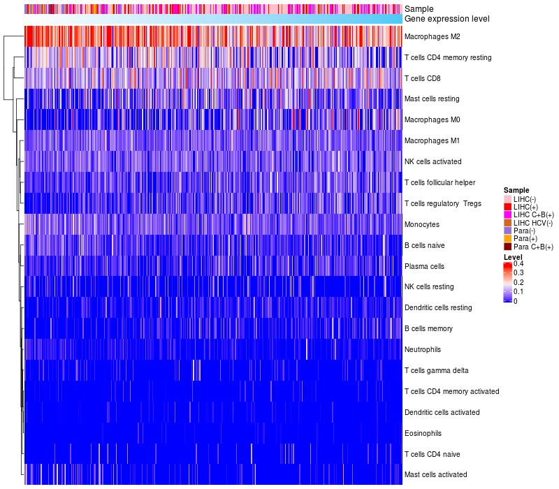 Liver hepatocellular carcinoma HCV (HBV+)(86), Liver hepatocellular carcinoma HCV (HBV-)(19), Liver hepatocellular carcinoma (HBV+)(209), Liver hepatocellular carcinoma (HBV+)(60), Paracancerous HCV (HBV+)(4), Paracancerous (HBV-)(28), Paracancerous (HBV+)(18) |