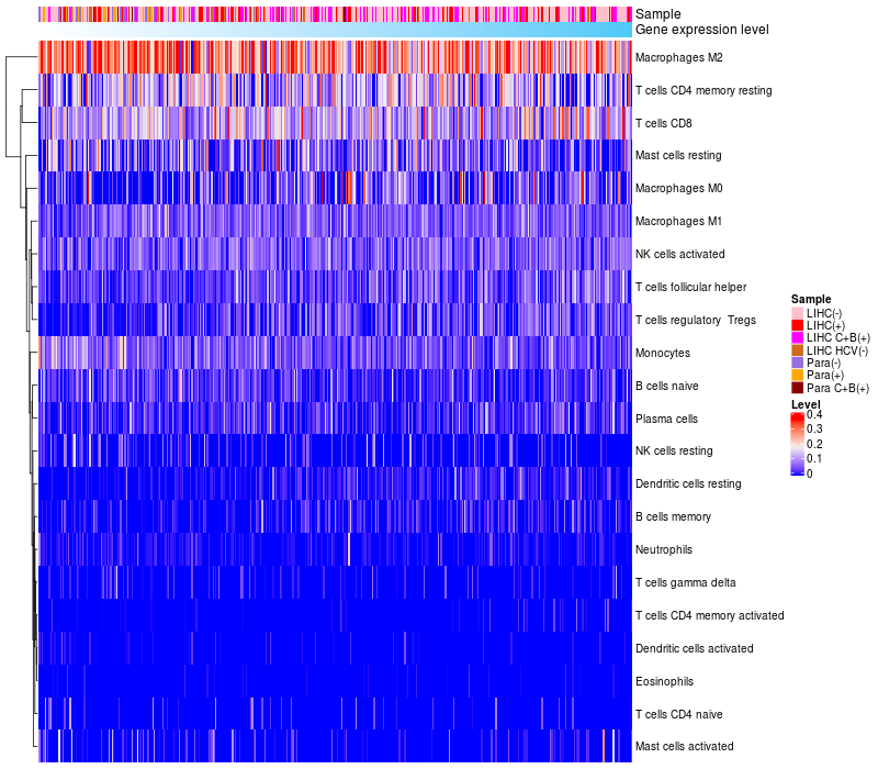 Relationship between gene expression and immune infiltrating cell level