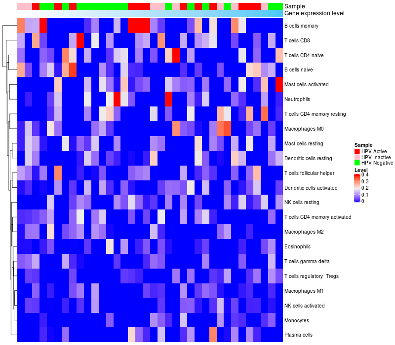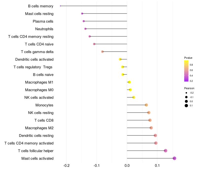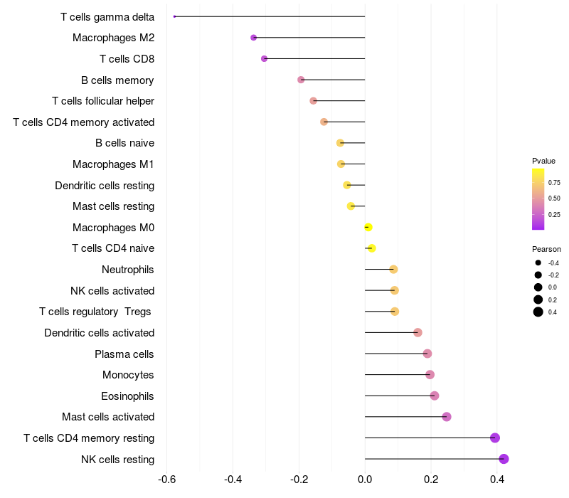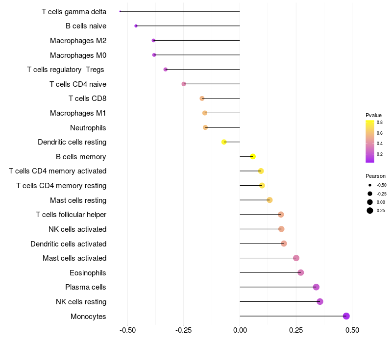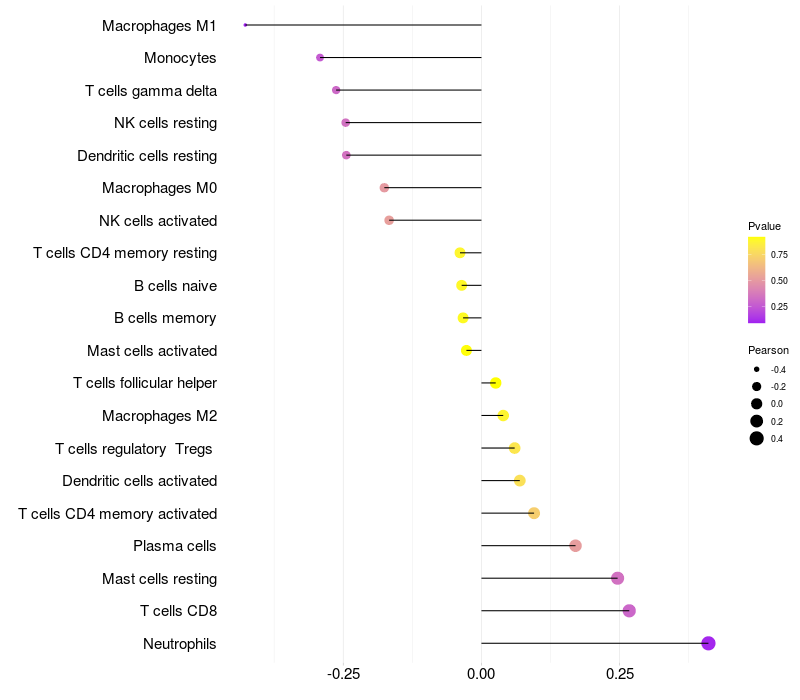 Lollipop of VSTM2A expression and immune infiltrating cell level correlation result in HPV+ samples