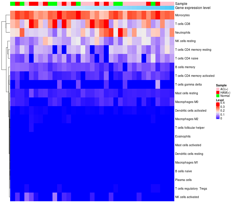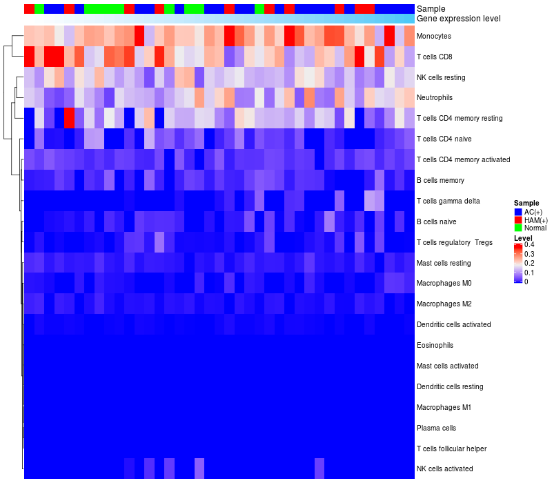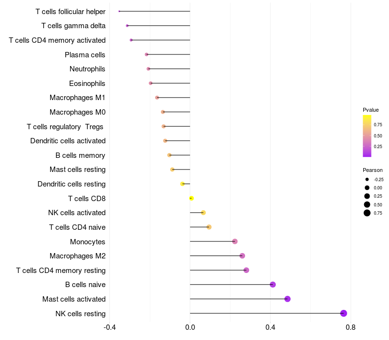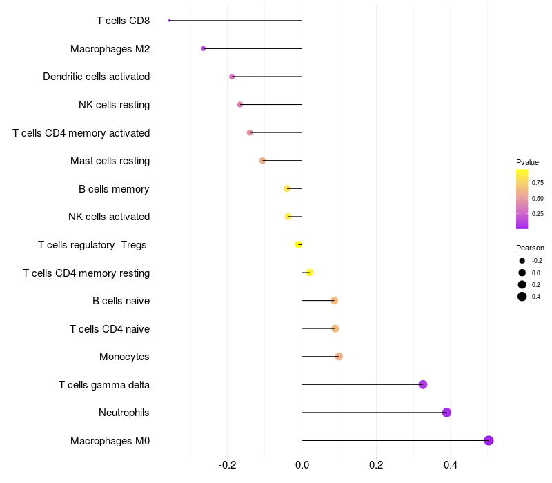 Relationship between gene expression and immune infiltrating cell level