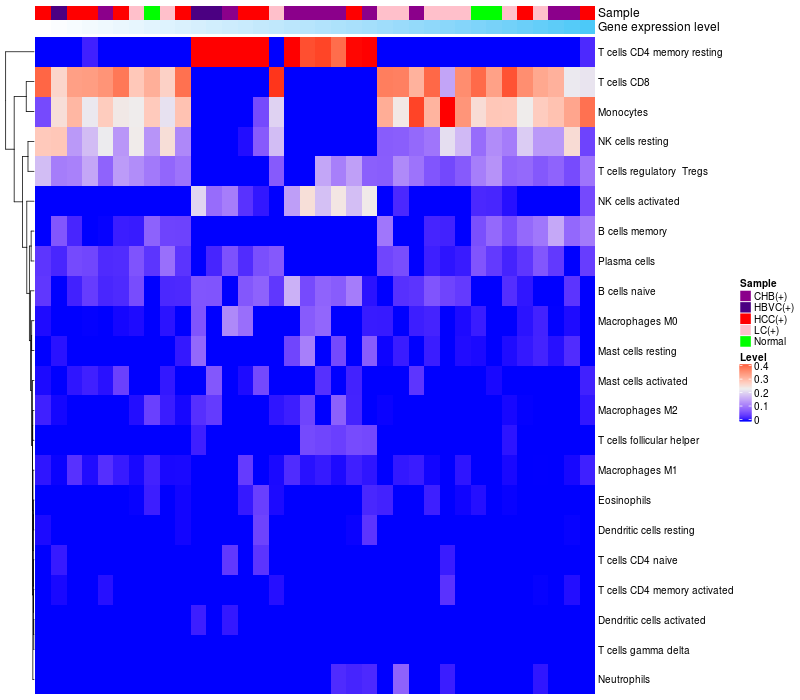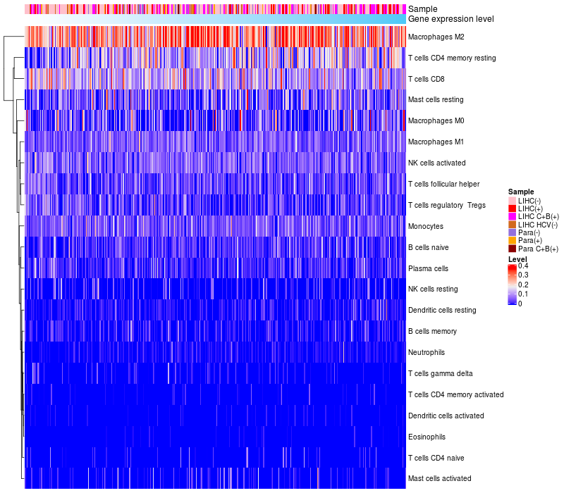 Liver hepatocellular carcinoma HCV (HBV+)(86), Liver hepatocellular carcinoma HCV (HBV-)(19), Liver hepatocellular carcinoma (HBV+)(209), Liver hepatocellular carcinoma (HBV+)(60), Paracancerous HCV (HBV+)(4), Paracancerous (HBV-)(28), Paracancerous (HBV+)(18) |