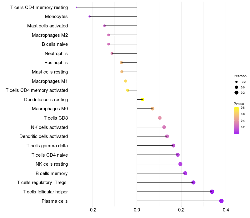 Relationship between gene expression and immune infiltrating cell level
