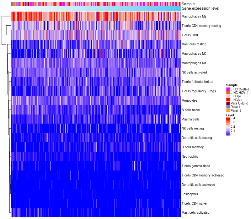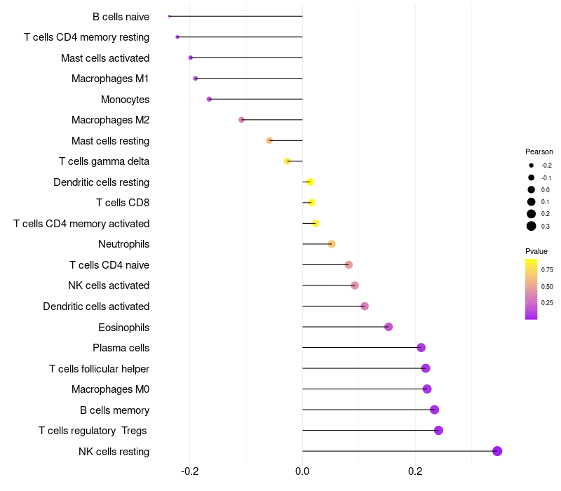 Relationship between gene expression and immune infiltrating cell level