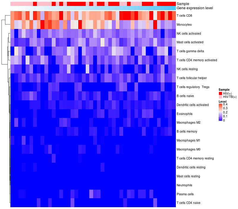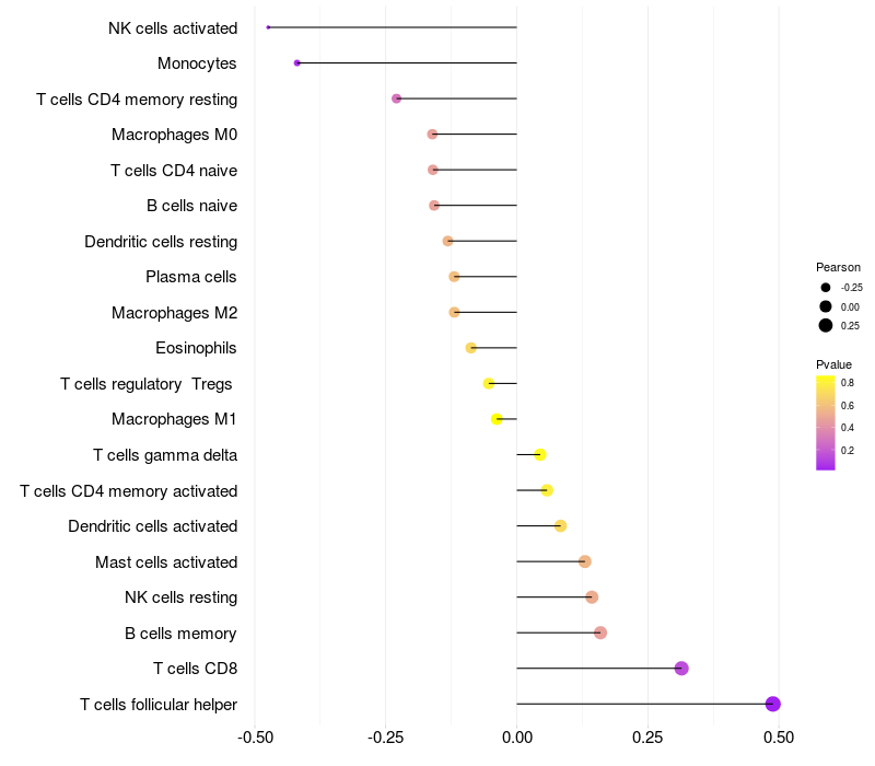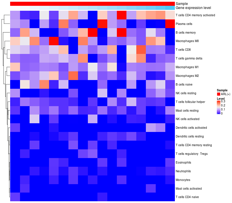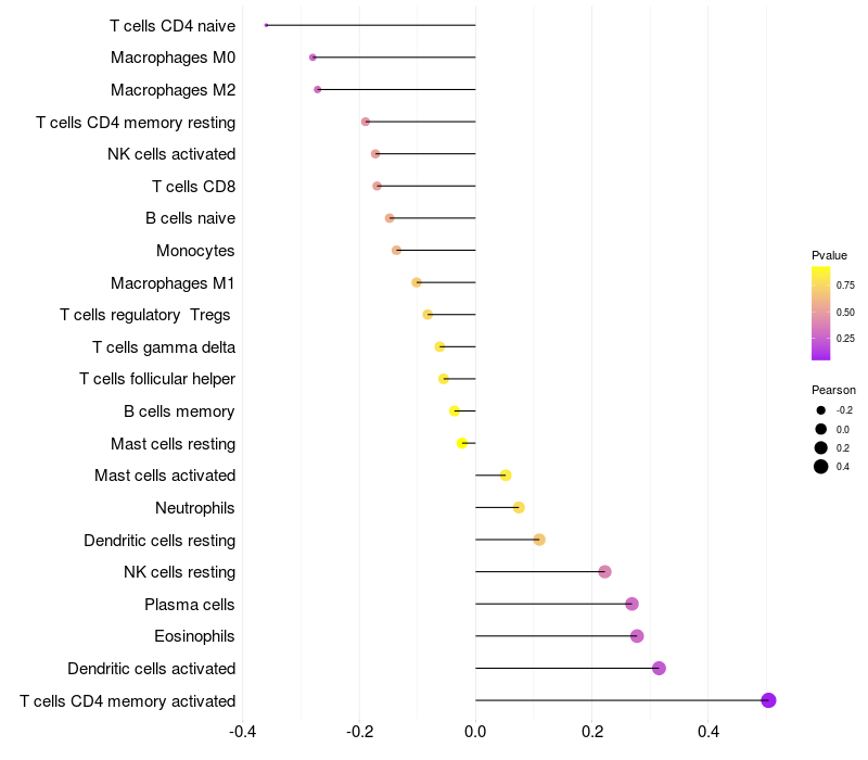 Relationship between gene expression and immune infiltrating cell level