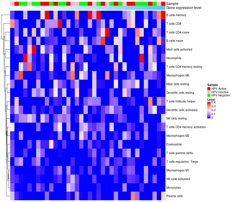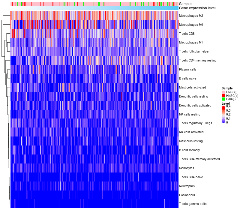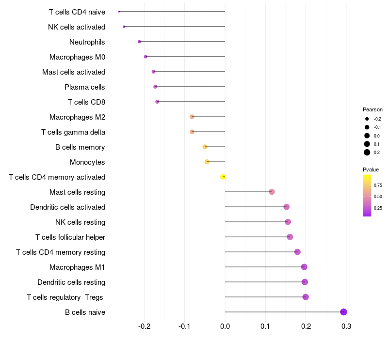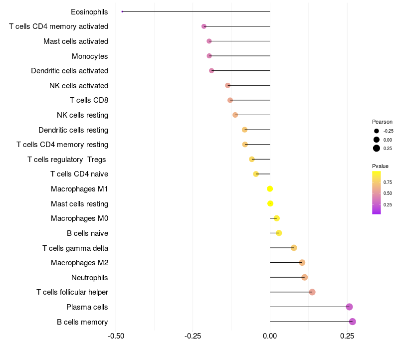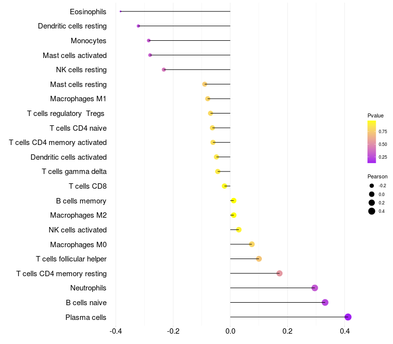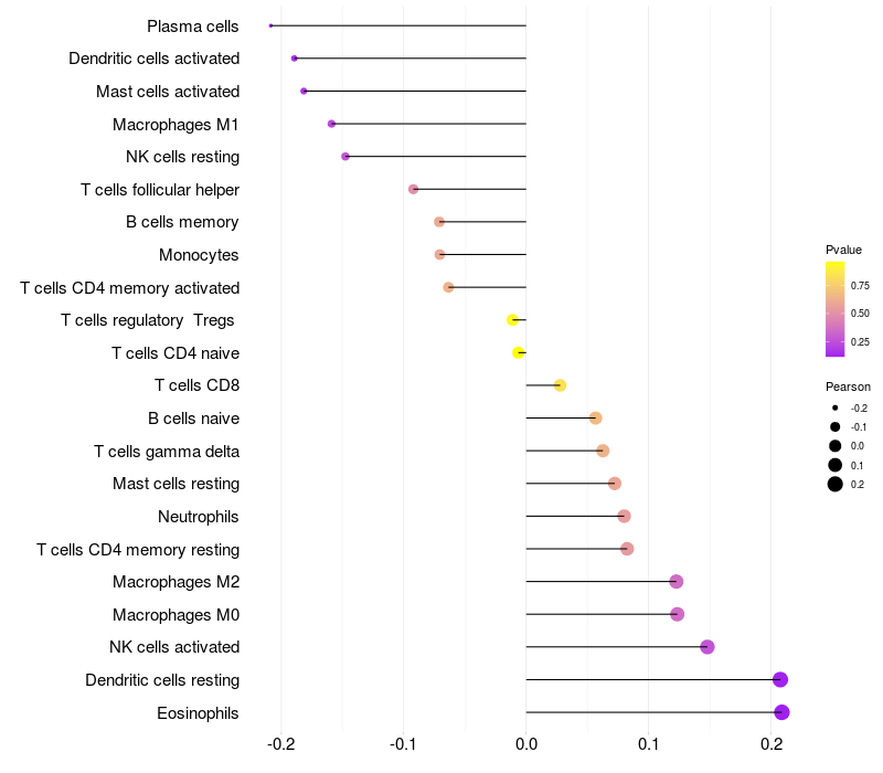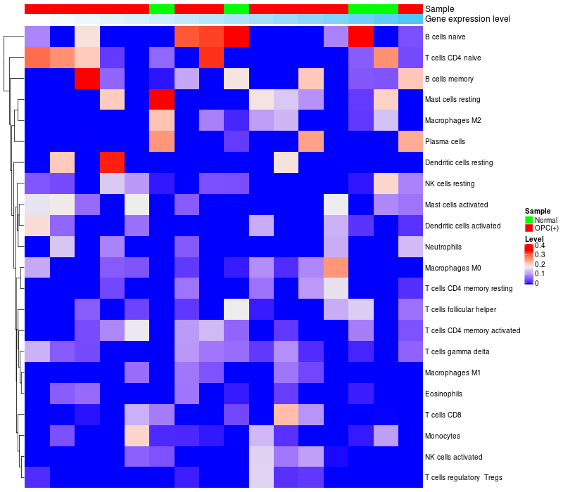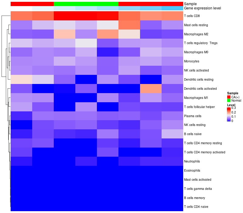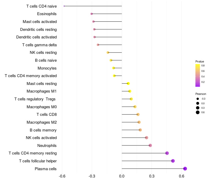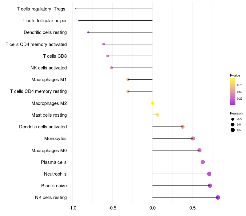 Relationship between gene expression and immune infiltrating cell level