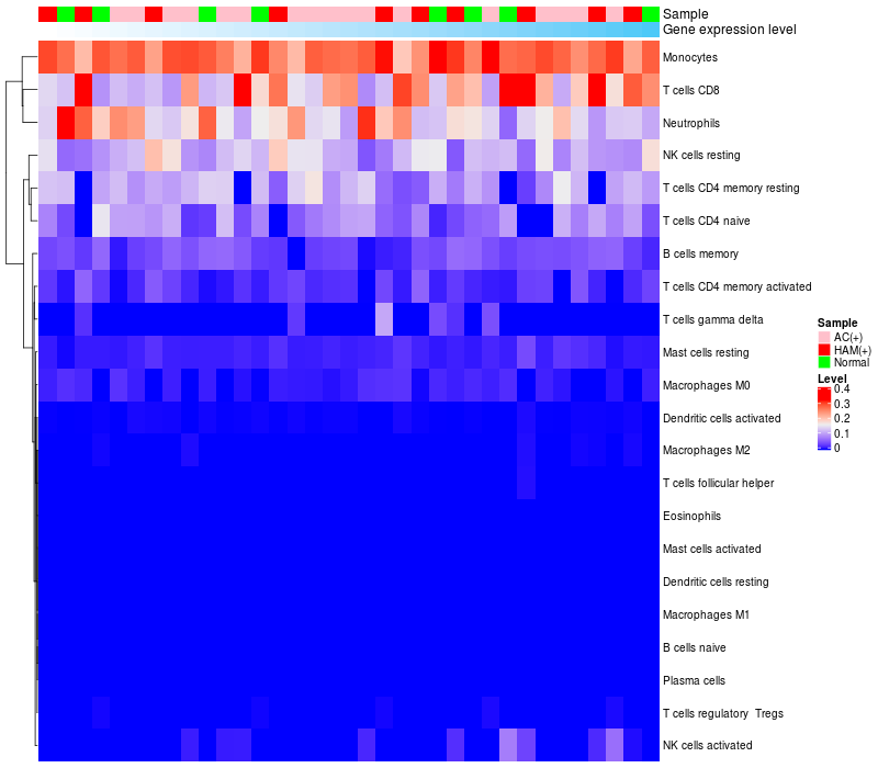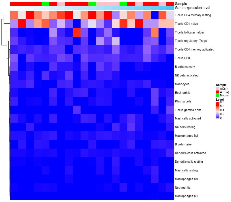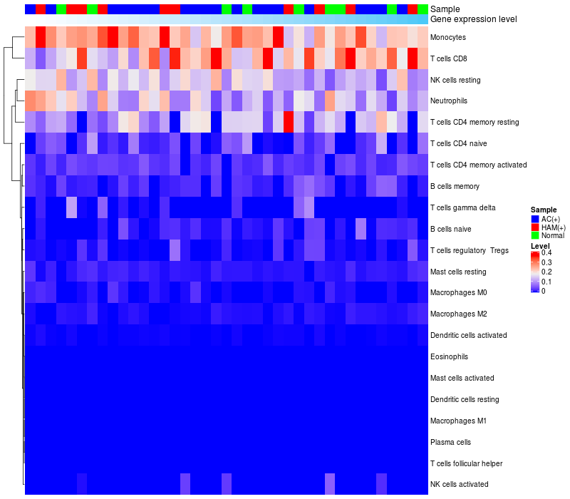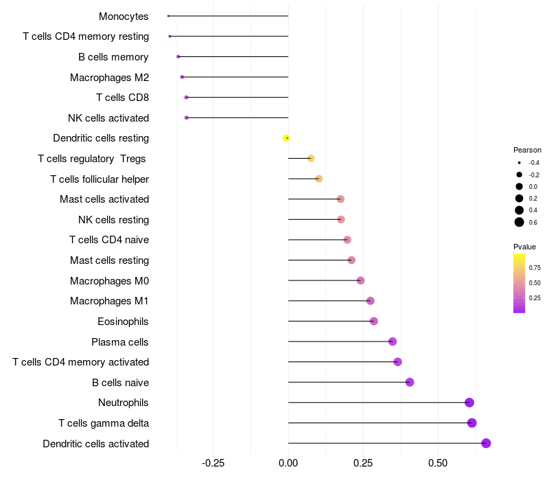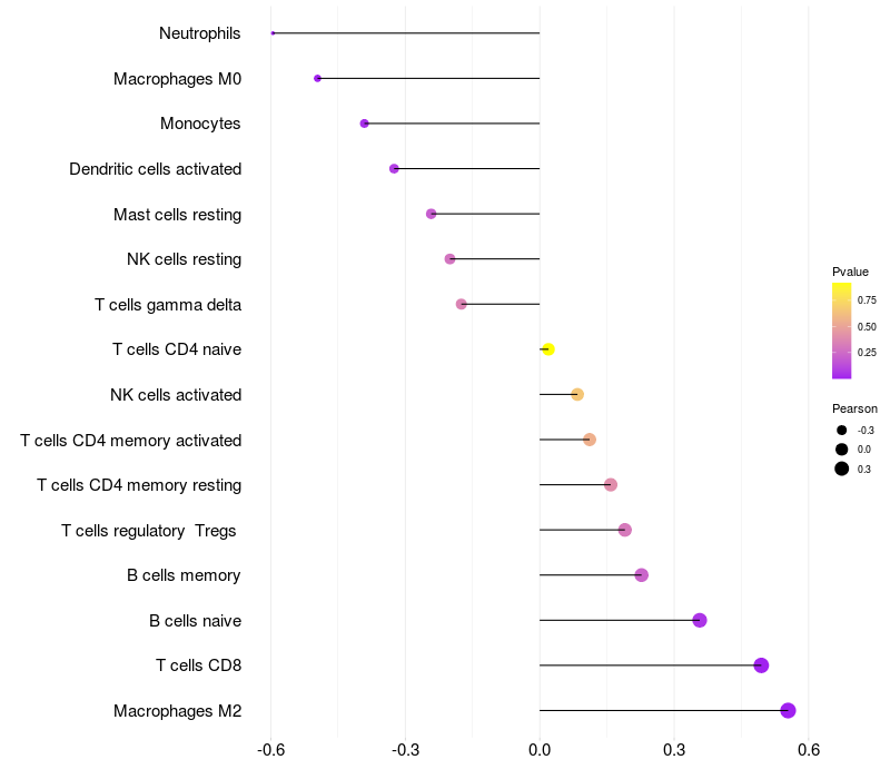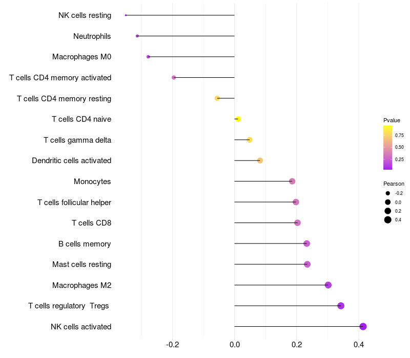 Lollipop of WDR12 expression and immune infiltrating cell level correlation result in HTLV1+ samples