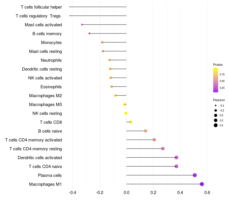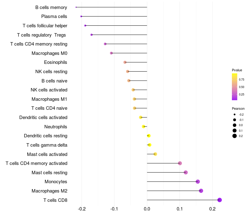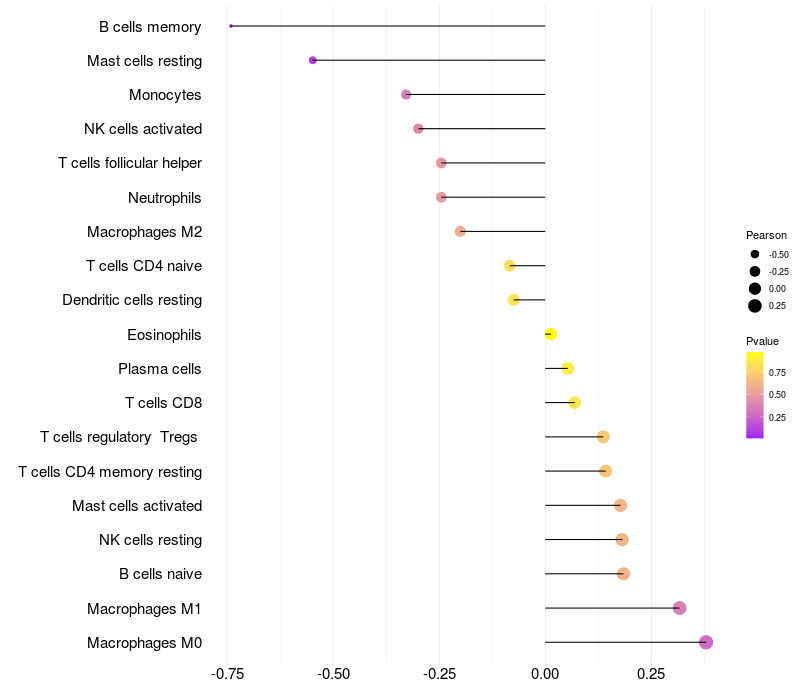 Lollipop of WDR31 expression and immune infiltrating cell level correlation result in HBV+ Liver cirrhosis samples