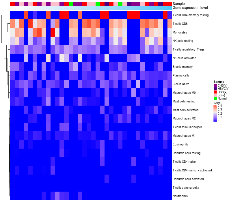 Liver hepatocellular carcinoma HCV (HBV+)(86), Liver hepatocellular carcinoma HCV (HBV-)(19), Liver hepatocellular carcinoma (HBV+)(209), Liver hepatocellular carcinoma (HBV+)(60), Paracancerous HCV (HBV+)(4), Paracancerous (HBV-)(28), Paracancerous (HBV+)(18) |