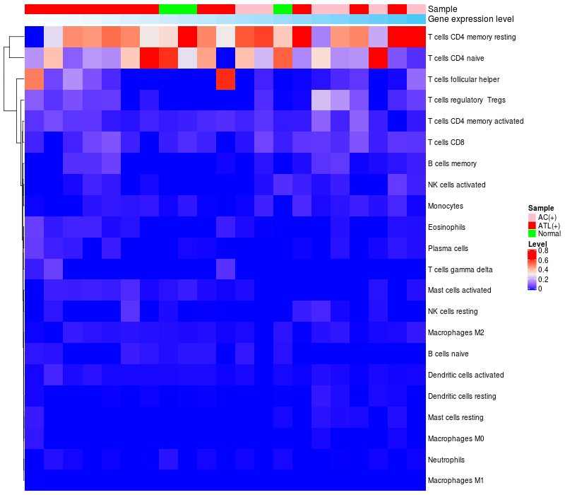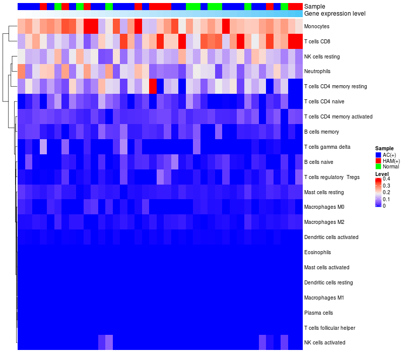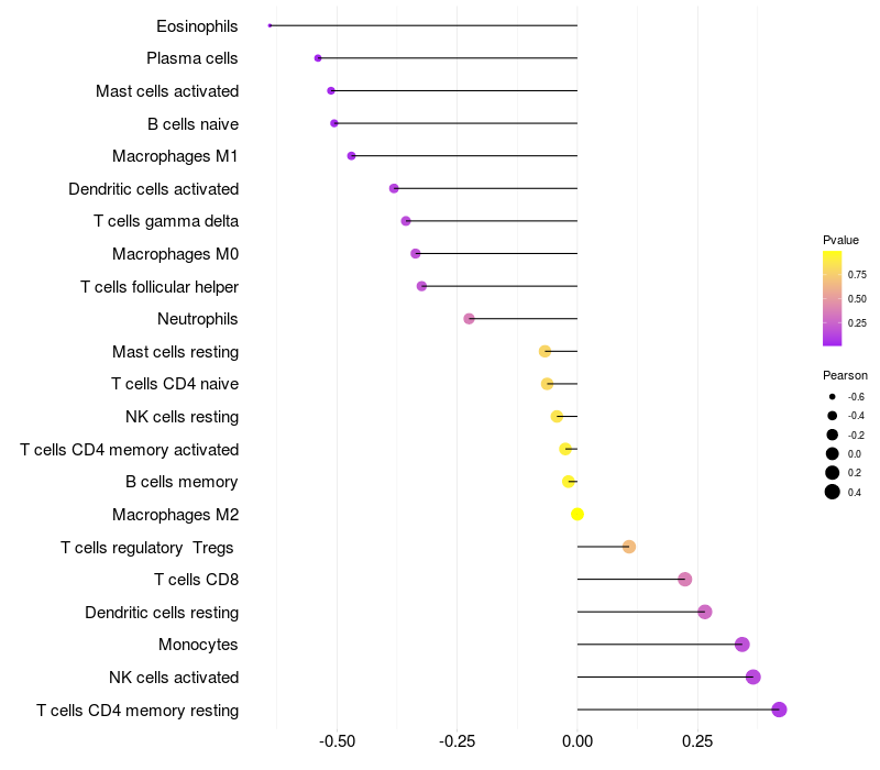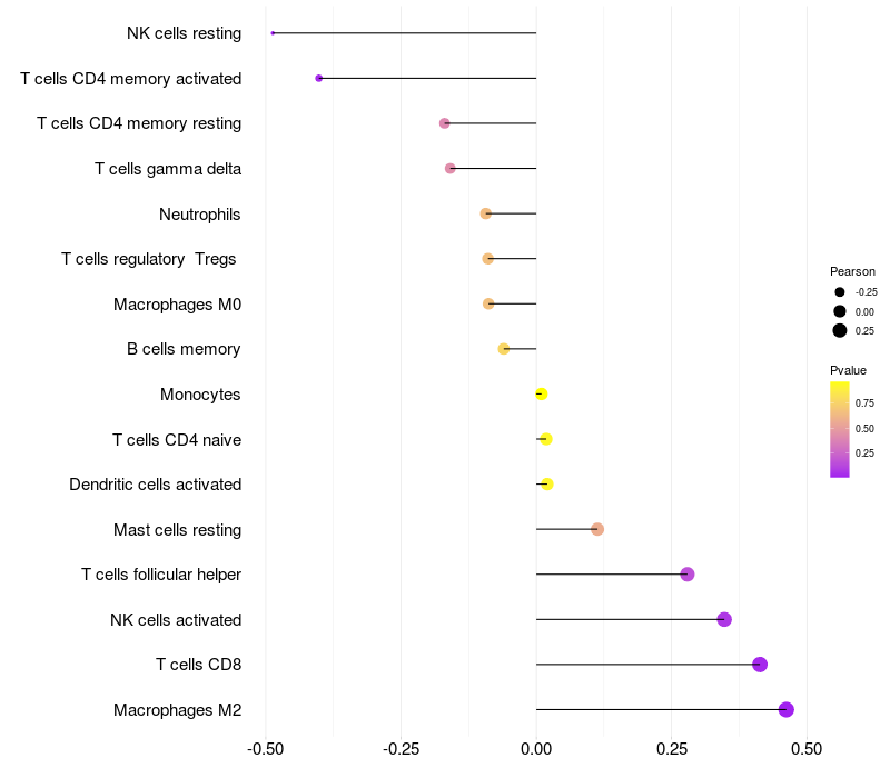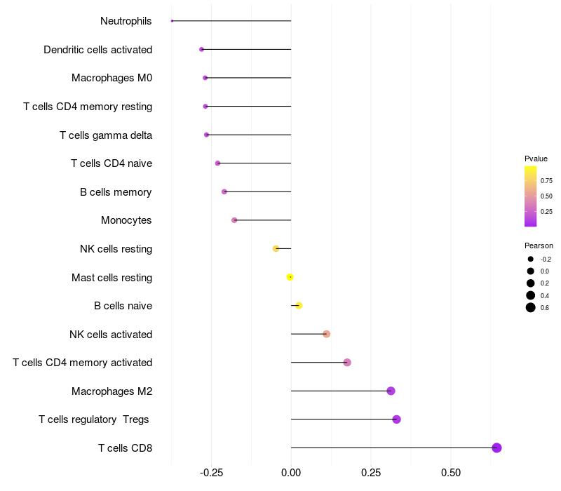 Lollipop of WDR37 expression and immune infiltrating cell level correlation result in HTLV1+ samples