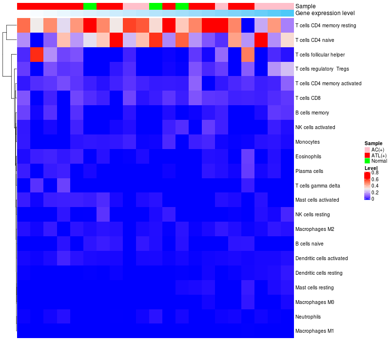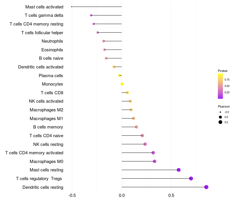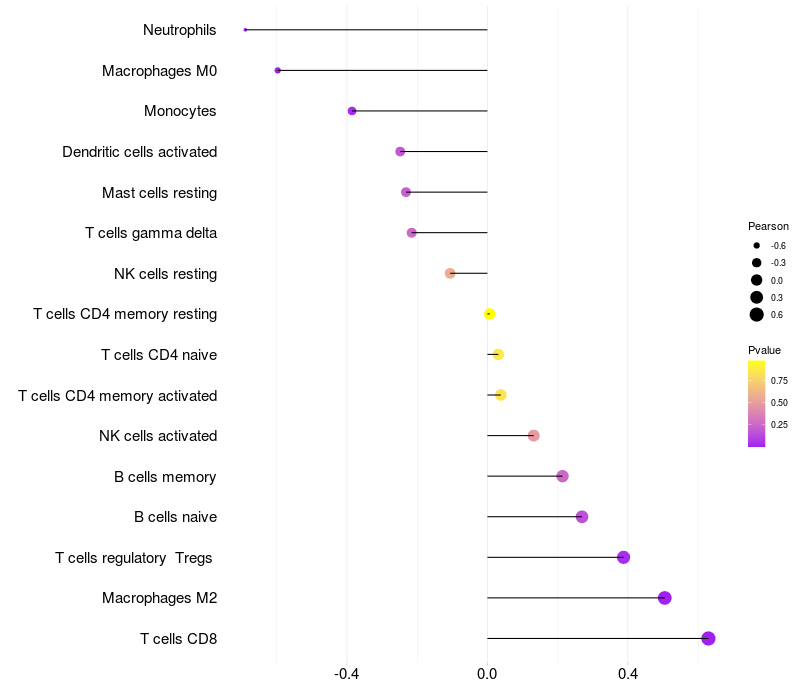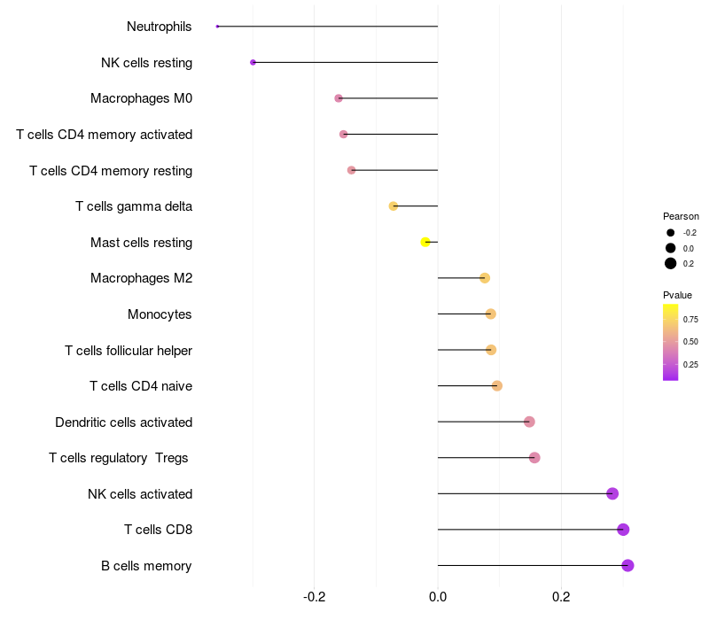 Lollipop of WDR4 expression and immune infiltrating cell level correlation result in HTLV1+ samples