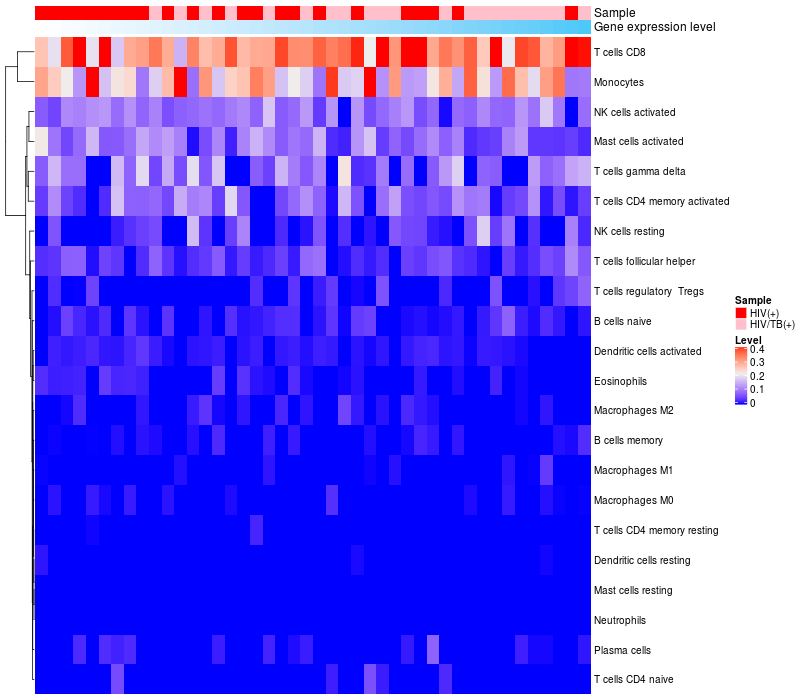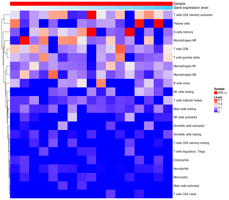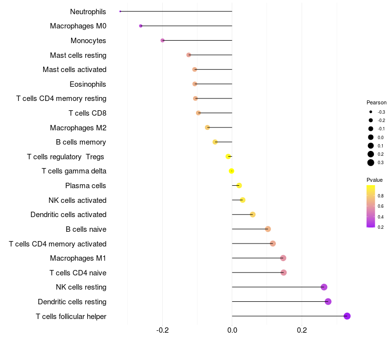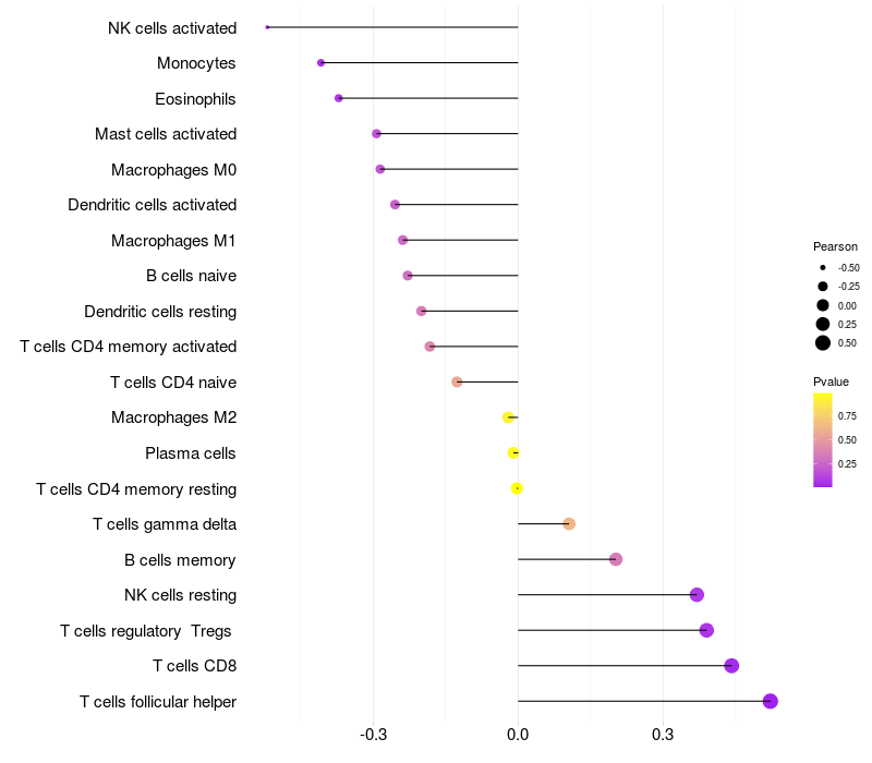 Relationship between gene expression and immune infiltrating cell level