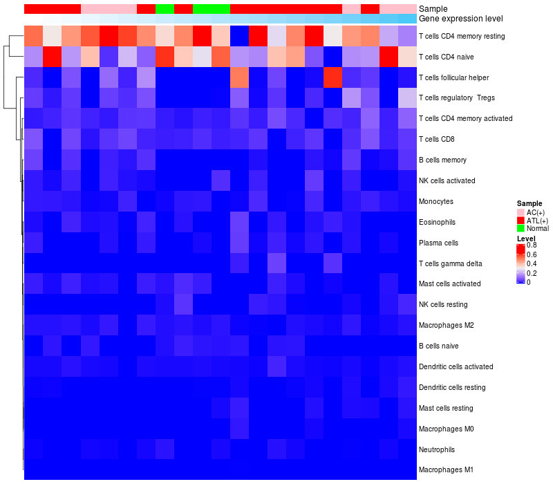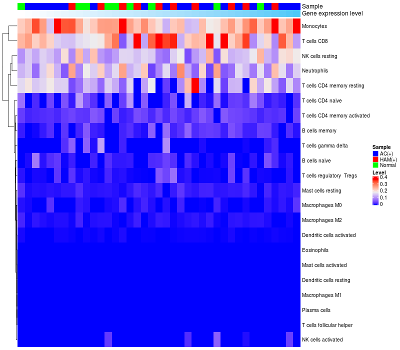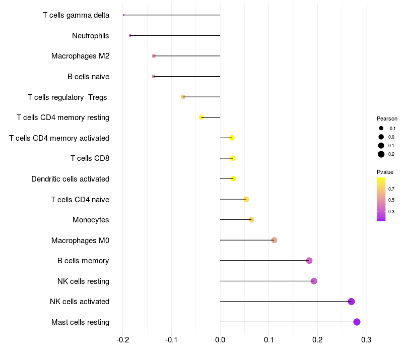 Relationship between gene expression and immune infiltrating cell level