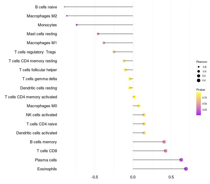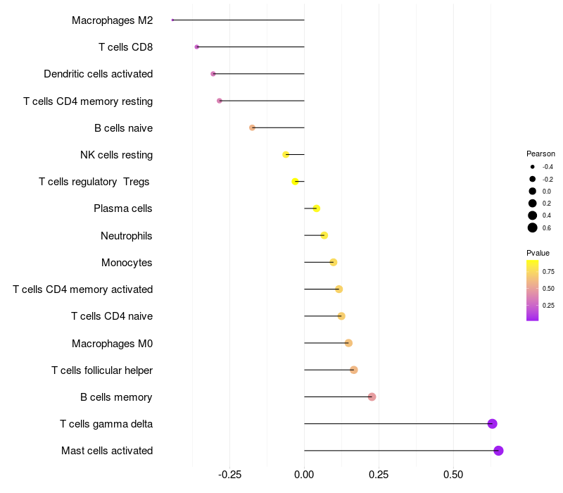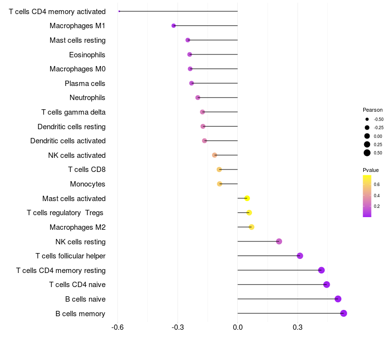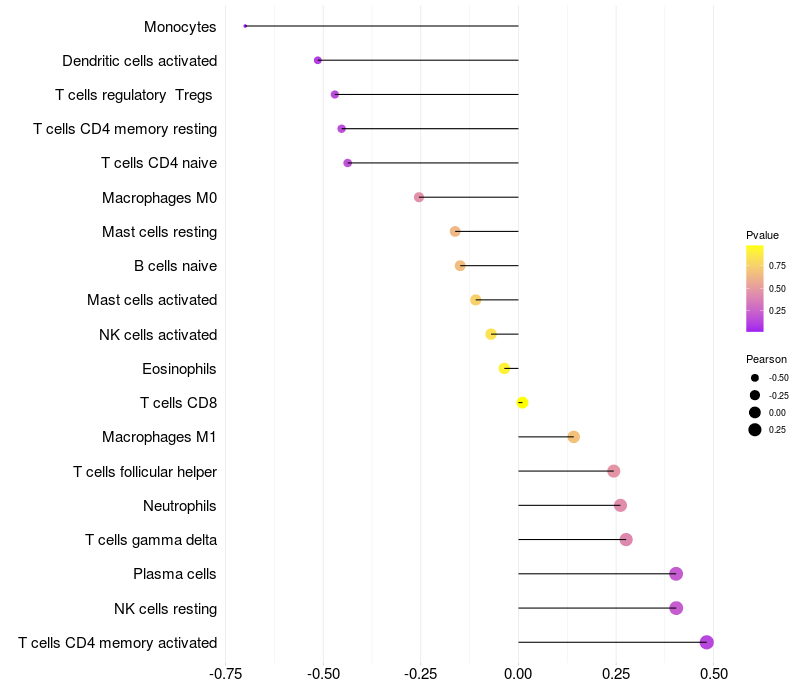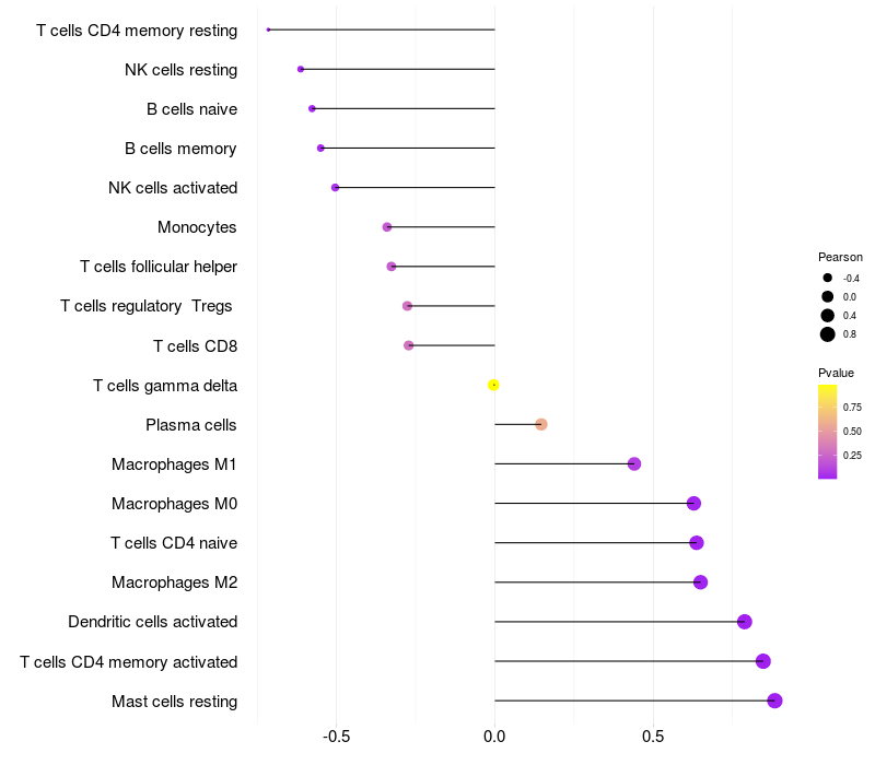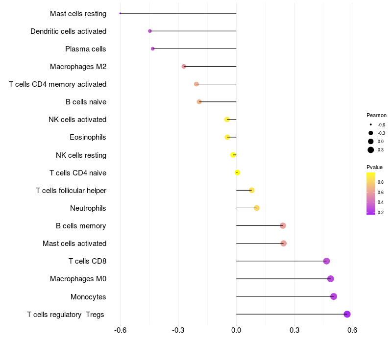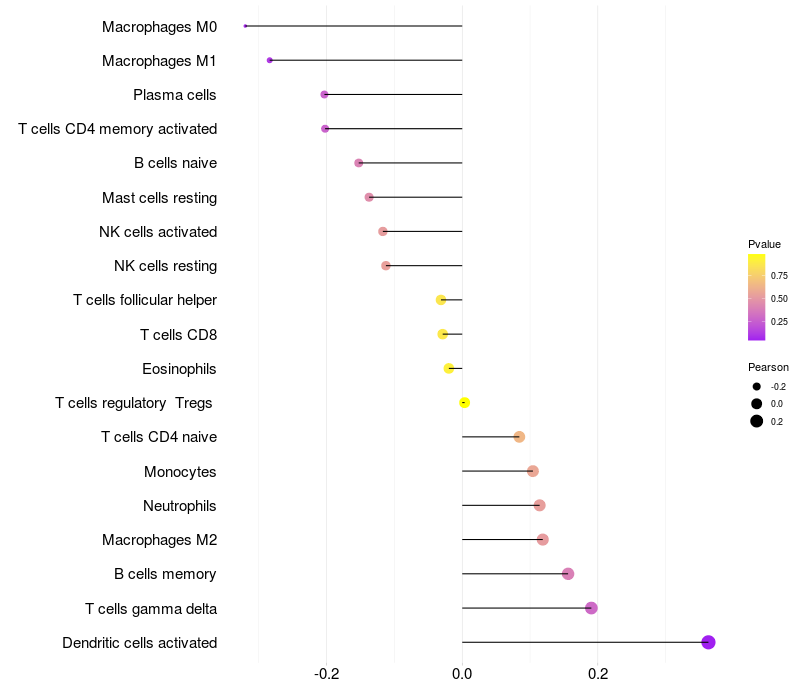 Lollipop of WDR93 expression and immune infiltrating cell level correlation result in EBV+ samples