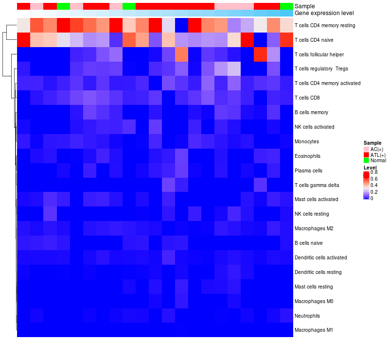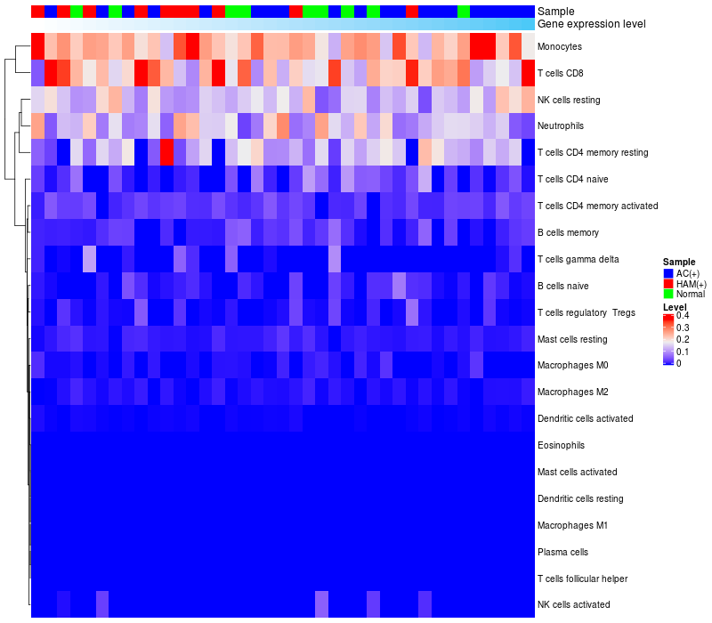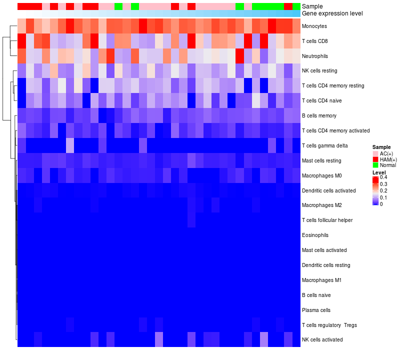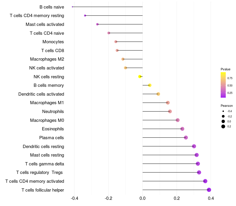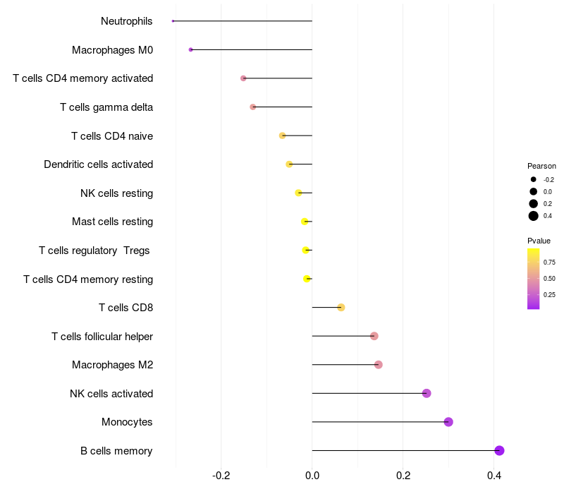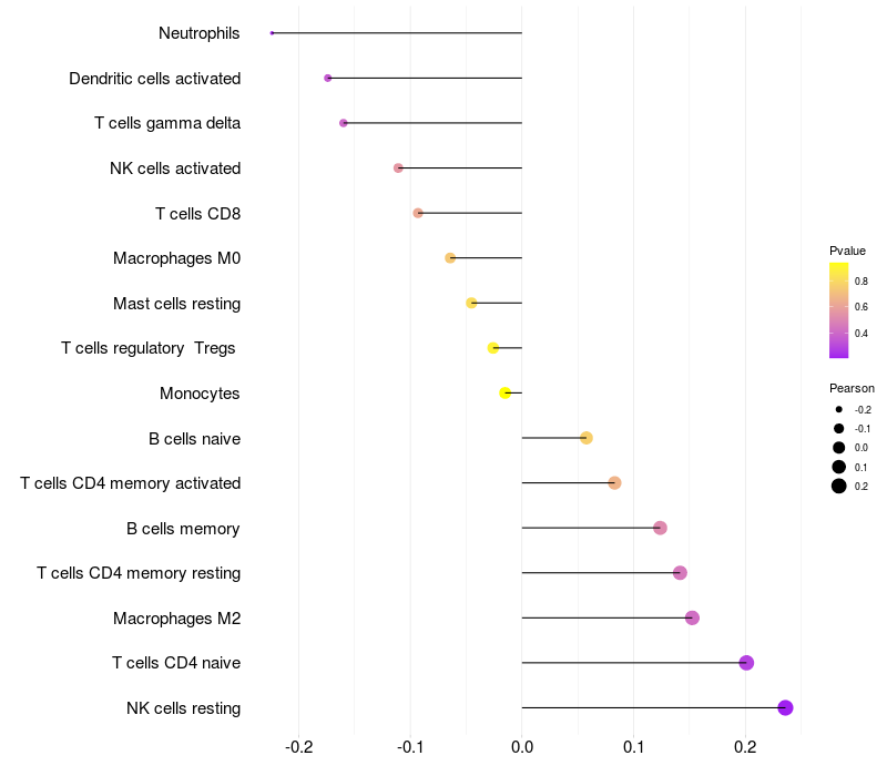 Lollipop of WIPF3 expression and immune infiltrating cell level correlation result in HTLV1+ samples