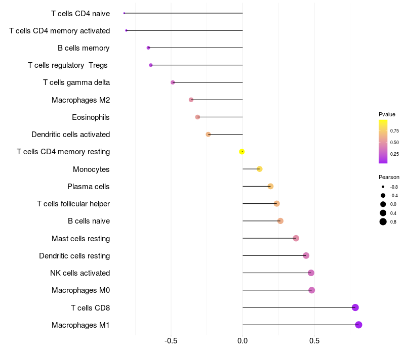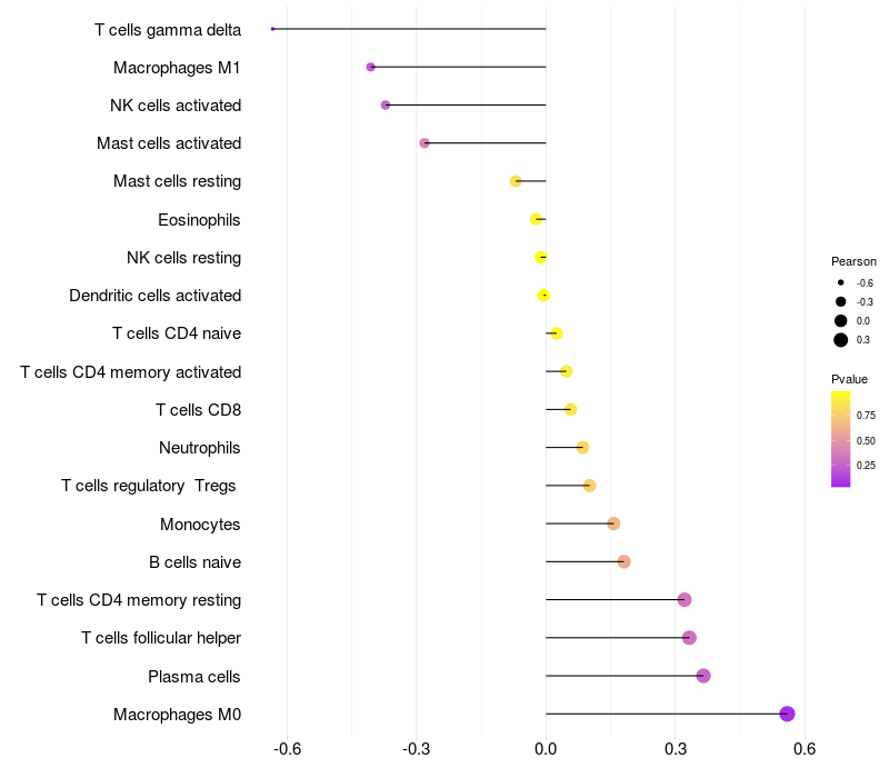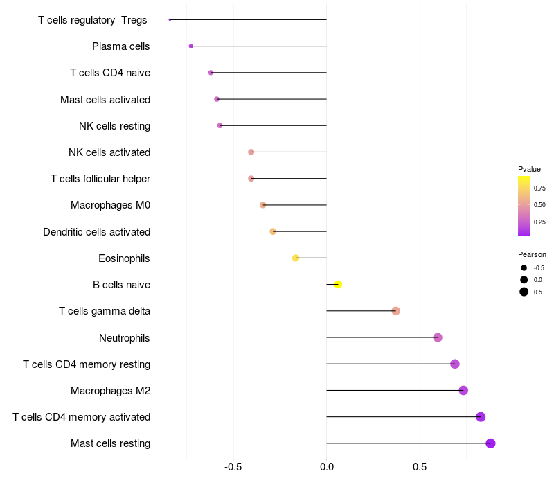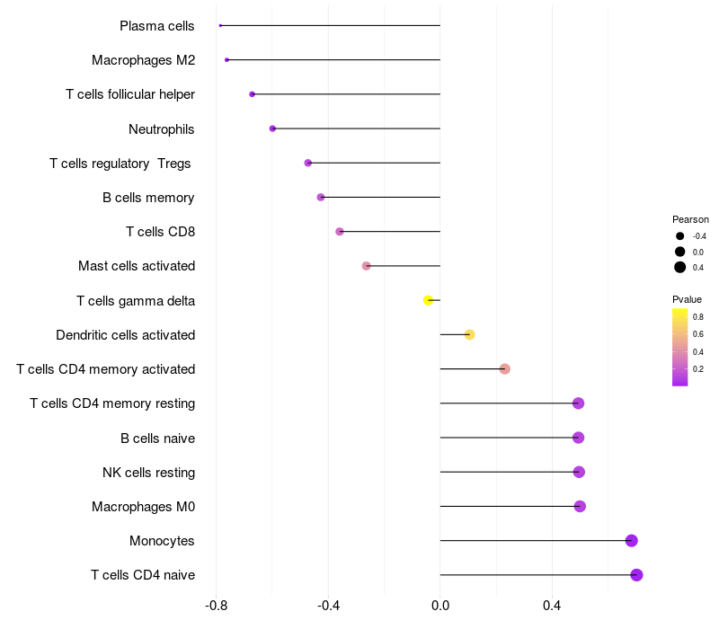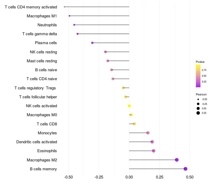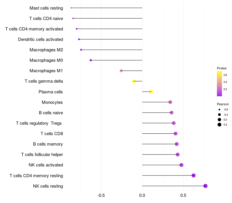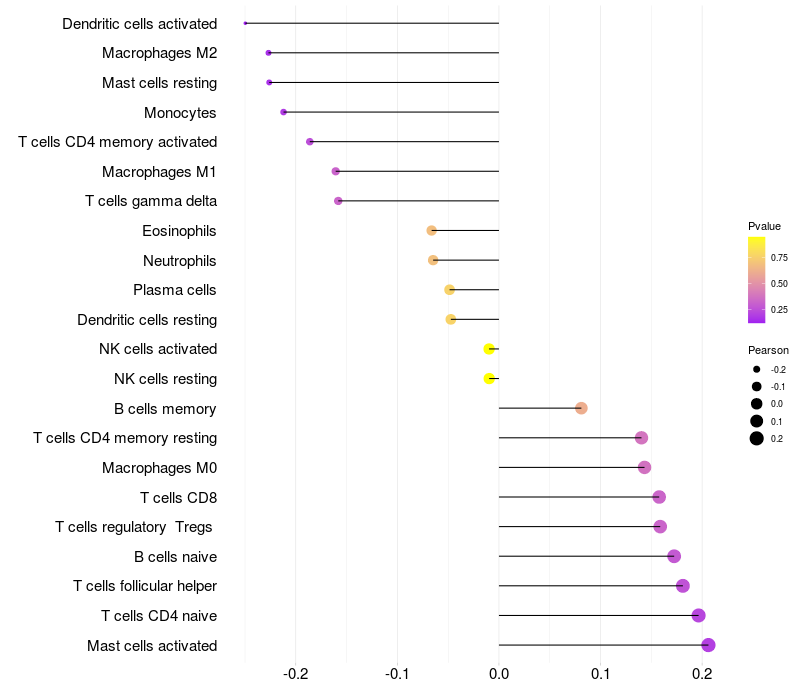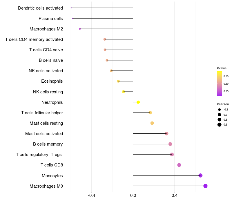 Lollipop of WIPI2 expression and immune infiltrating cell level correlation result in EBV+ samples