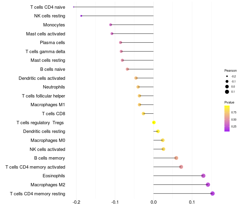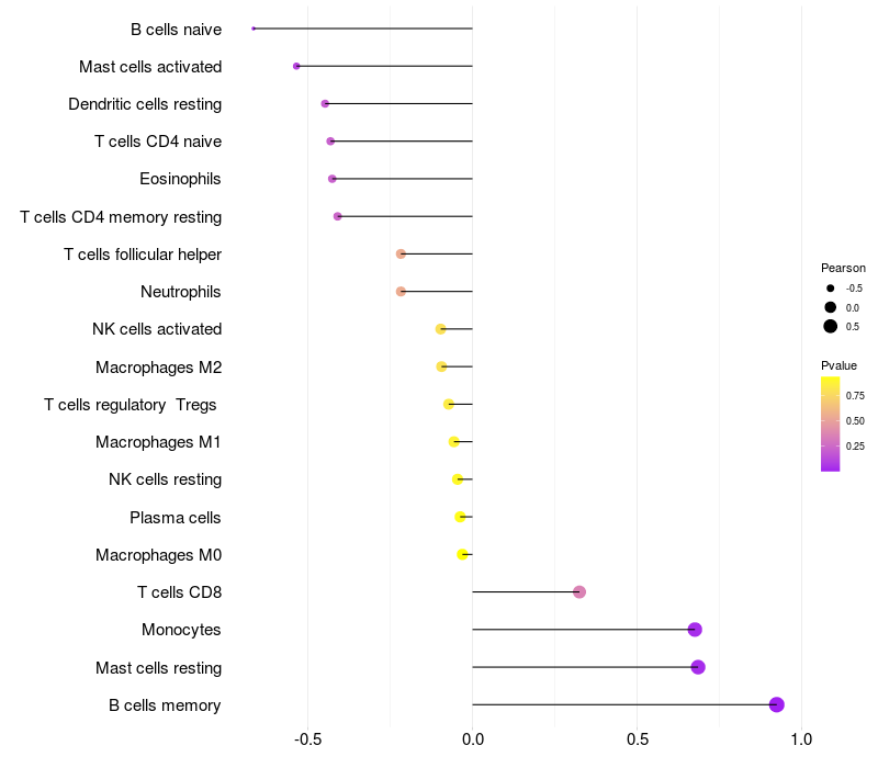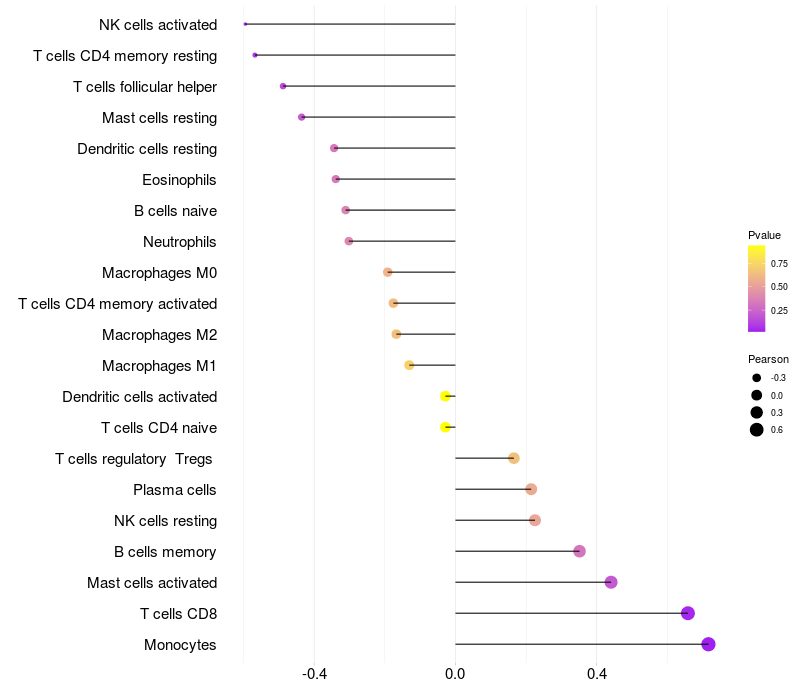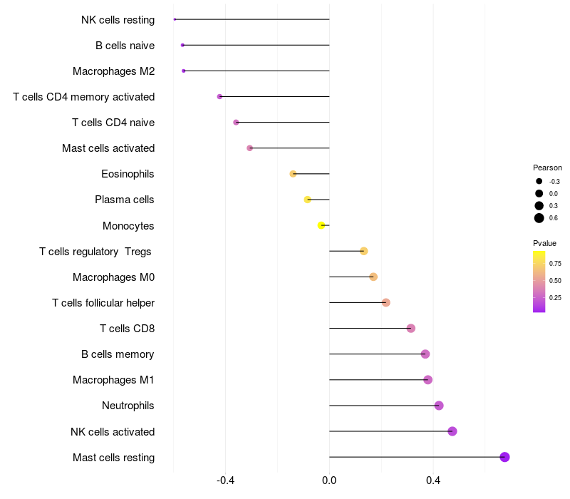 Lollipop of WNK1 expression and immune infiltrating cell level correlation result in HBV+ Liver cirrhosis samples