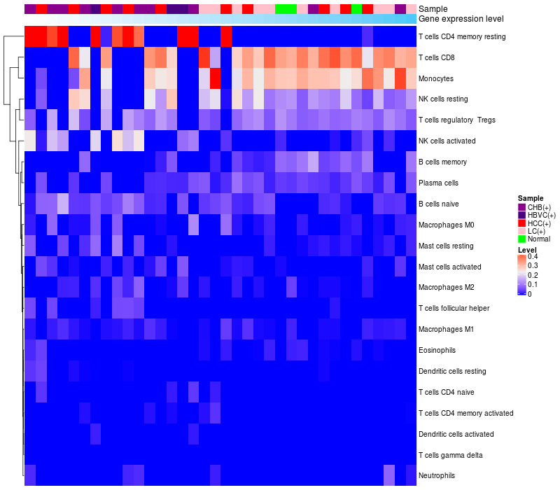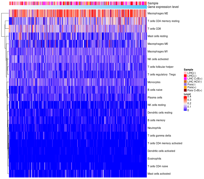 Liver hepatocellular carcinoma HCV (HBV+)(86), Liver hepatocellular carcinoma HCV (HBV-)(19), Liver hepatocellular carcinoma (HBV+)(209), Liver hepatocellular carcinoma (HBV+)(60), Paracancerous HCV (HBV+)(4), Paracancerous (HBV-)(28), Paracancerous (HBV+)(18) |