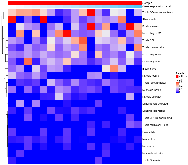 Relationship between gene expression and immune infiltrating cell level