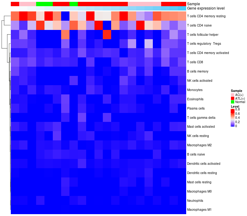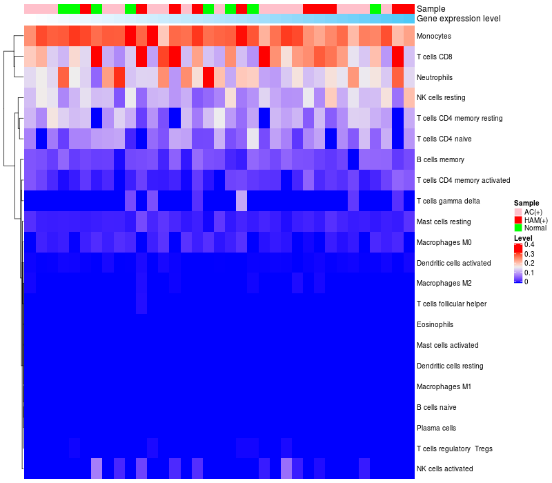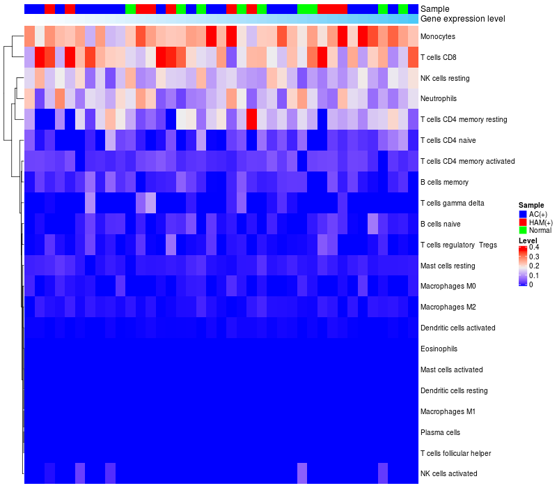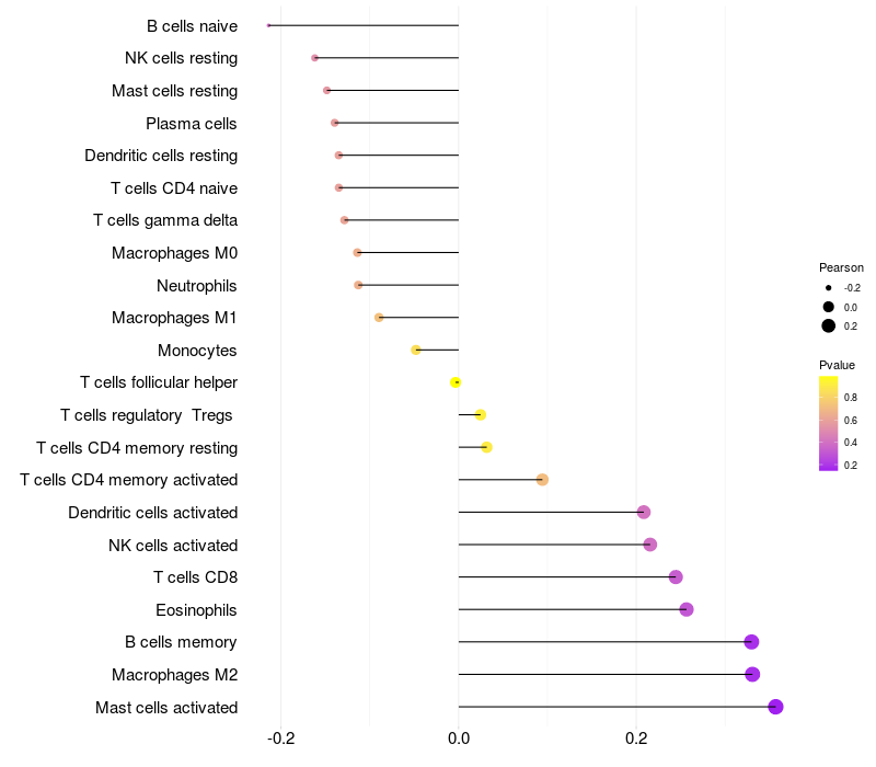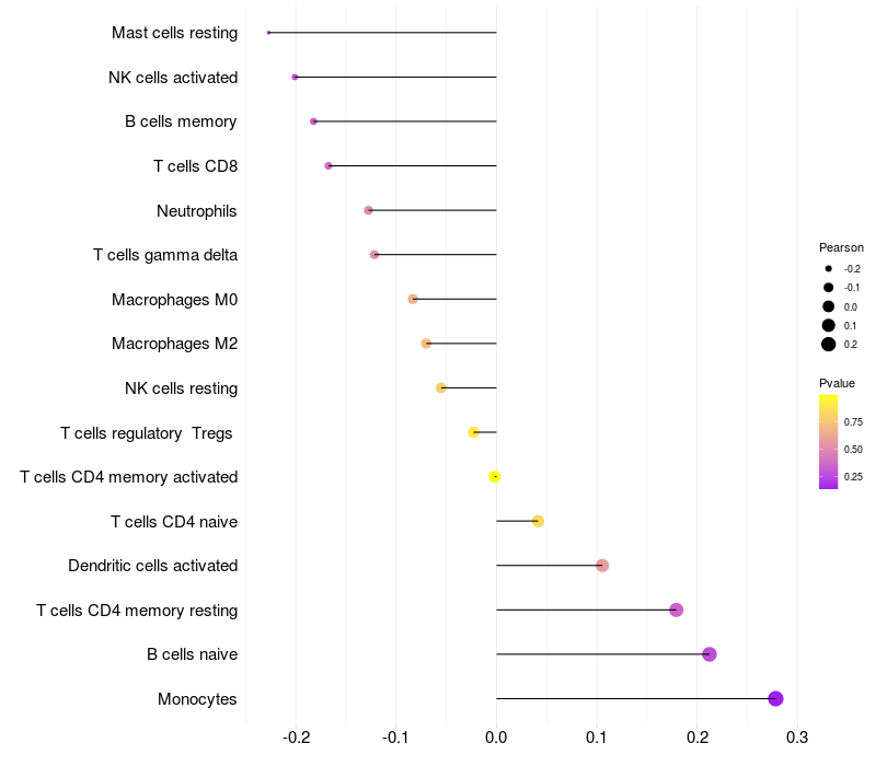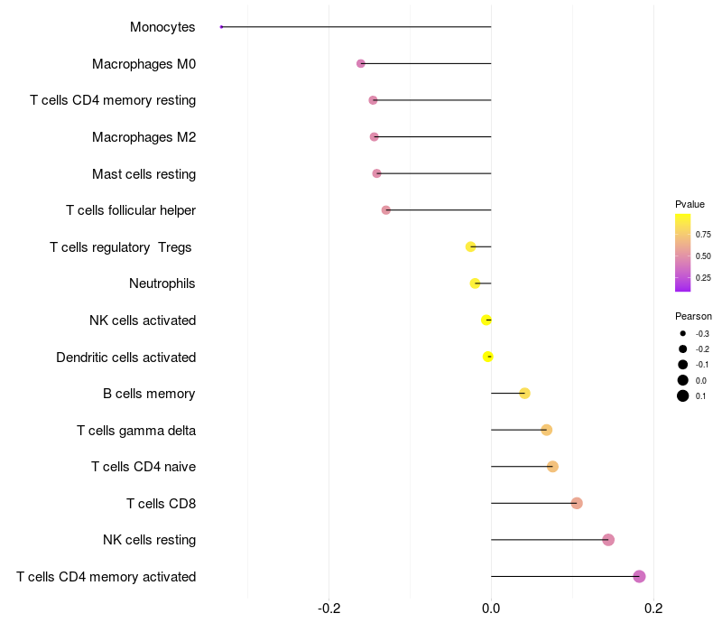 Lollipop of WNT11 expression and immune infiltrating cell level correlation result in HTLV1+ samples