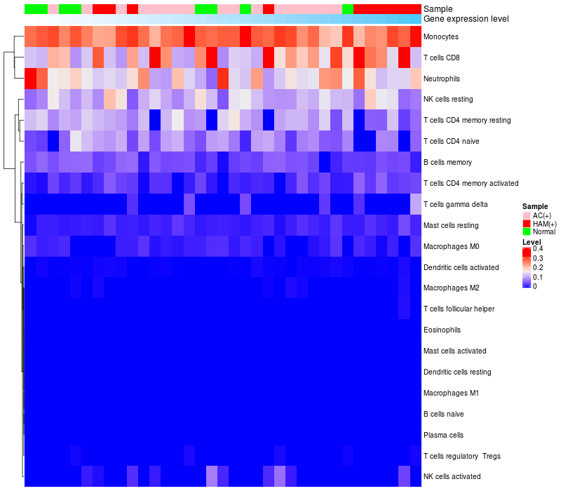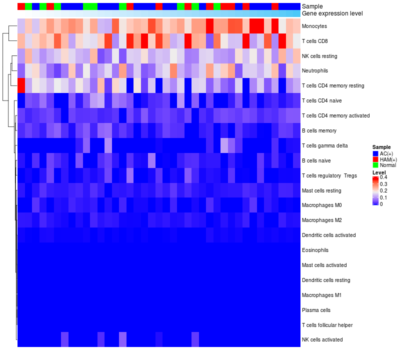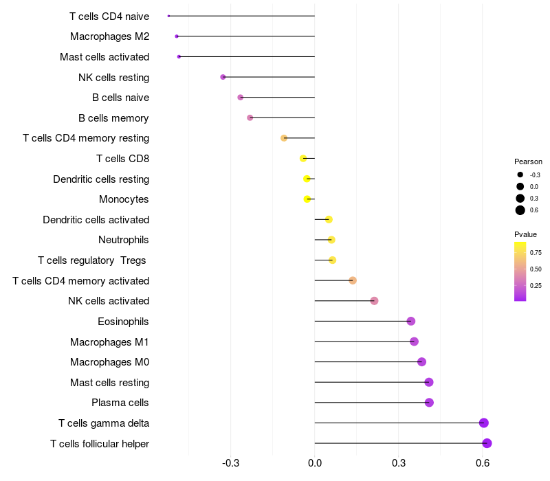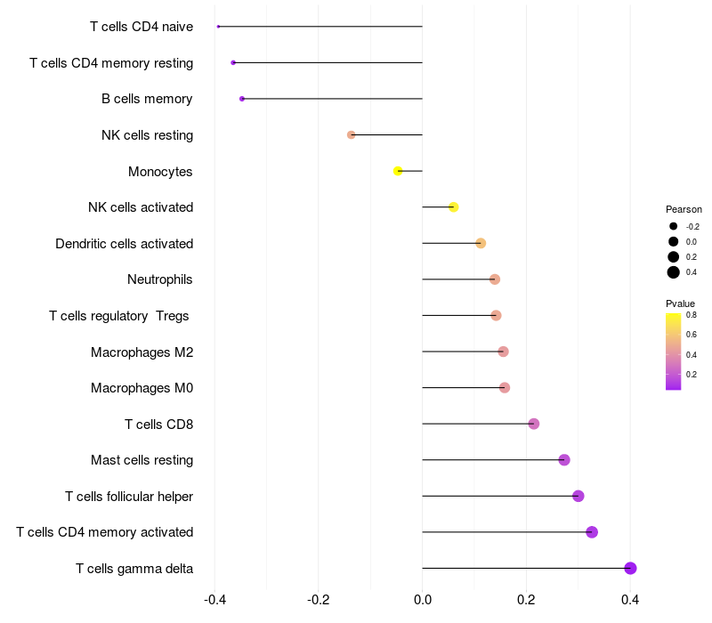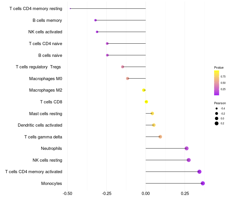 Lollipop of WSB2 expression and immune infiltrating cell level correlation result in HTLV1+ samples