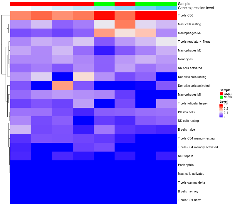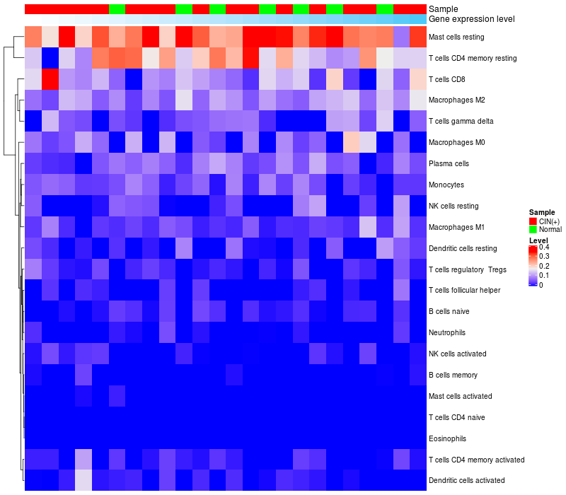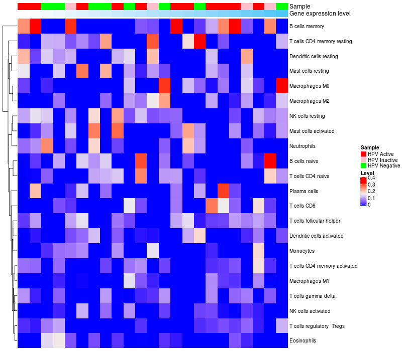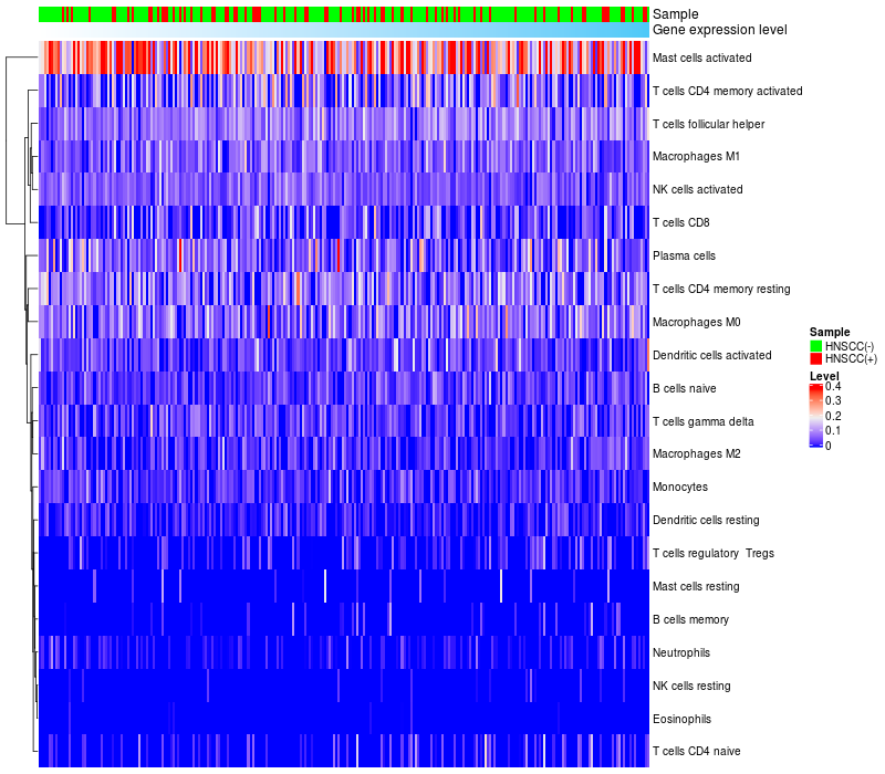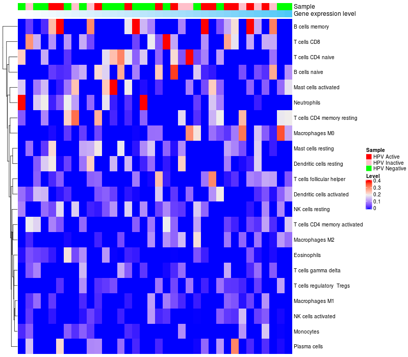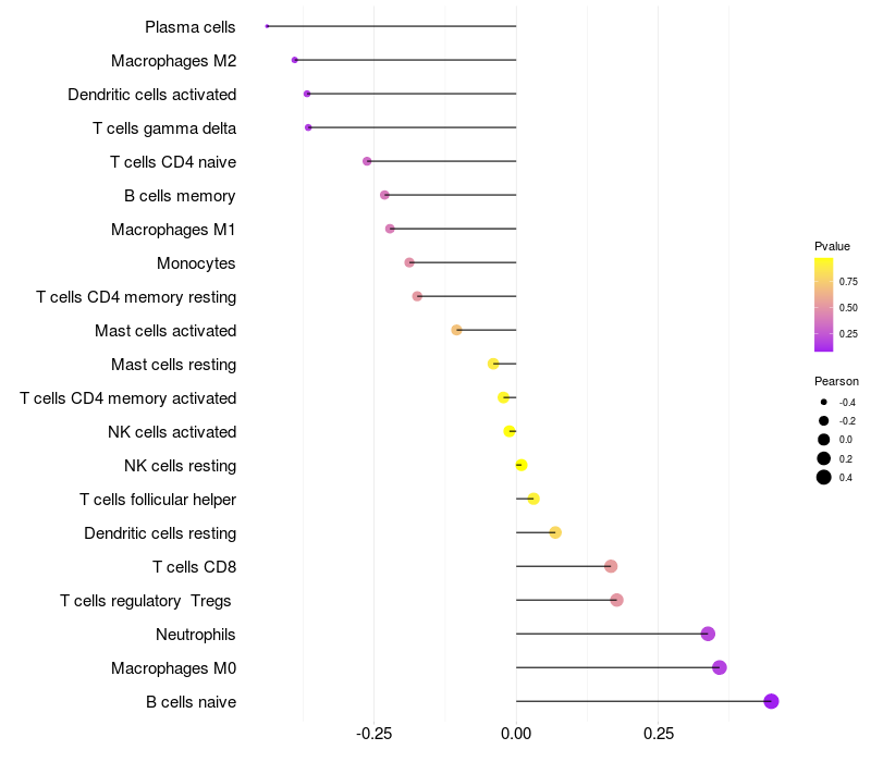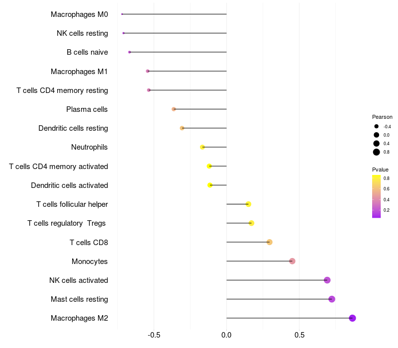 Lollipop of WWC3 expression and immune infiltrating cell level correlation result in HPV+ samples