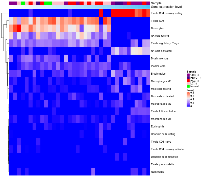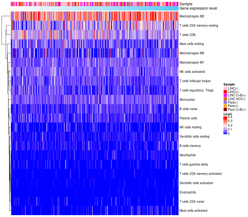 Liver hepatocellular carcinoma HCV (HBV+)(86), Liver hepatocellular carcinoma HCV (HBV-)(19), Liver hepatocellular carcinoma (HBV+)(209), Liver hepatocellular carcinoma (HBV+)(60), Paracancerous HCV (HBV+)(4), Paracancerous (HBV-)(28), Paracancerous (HBV+)(18) |