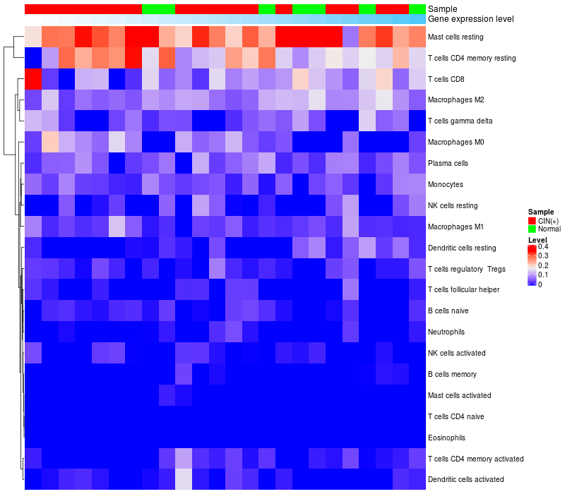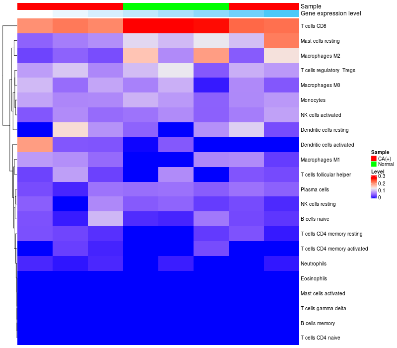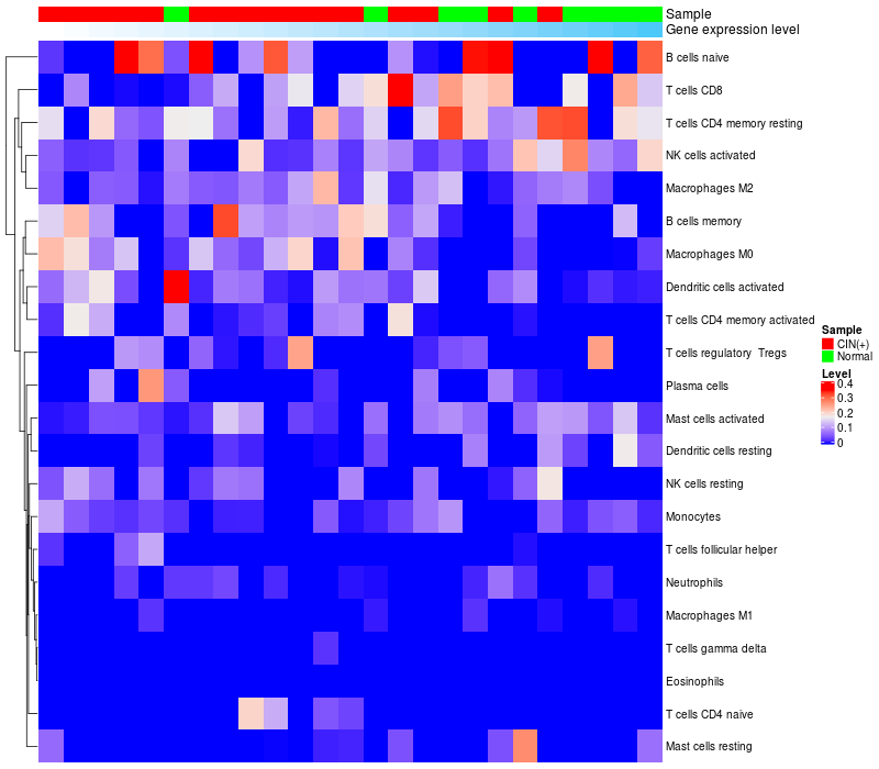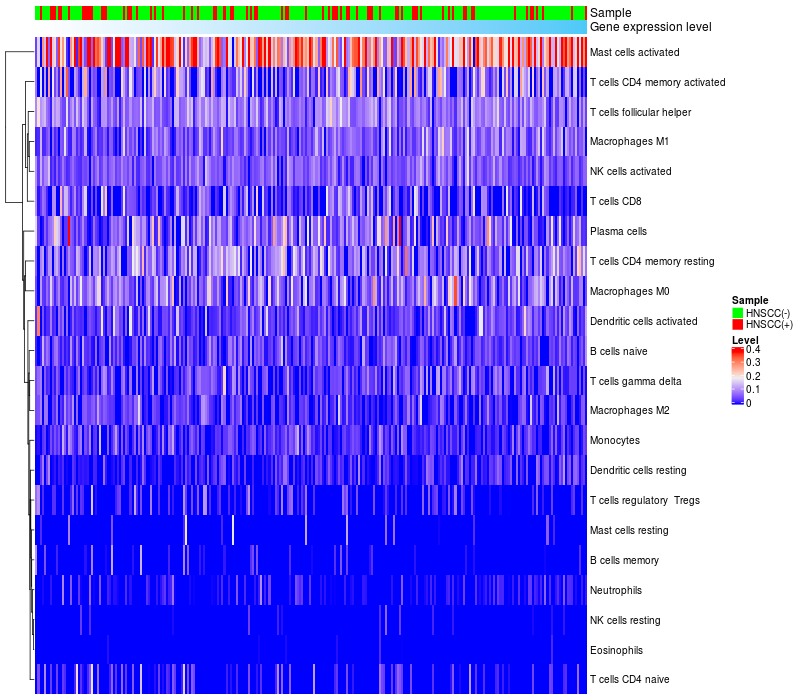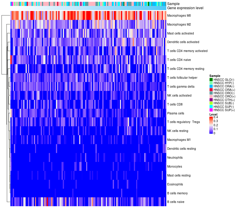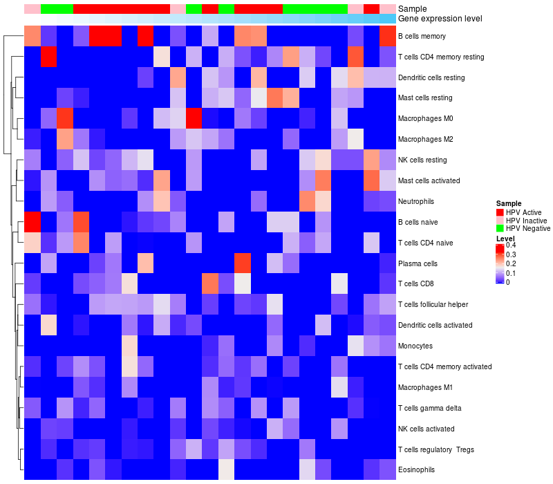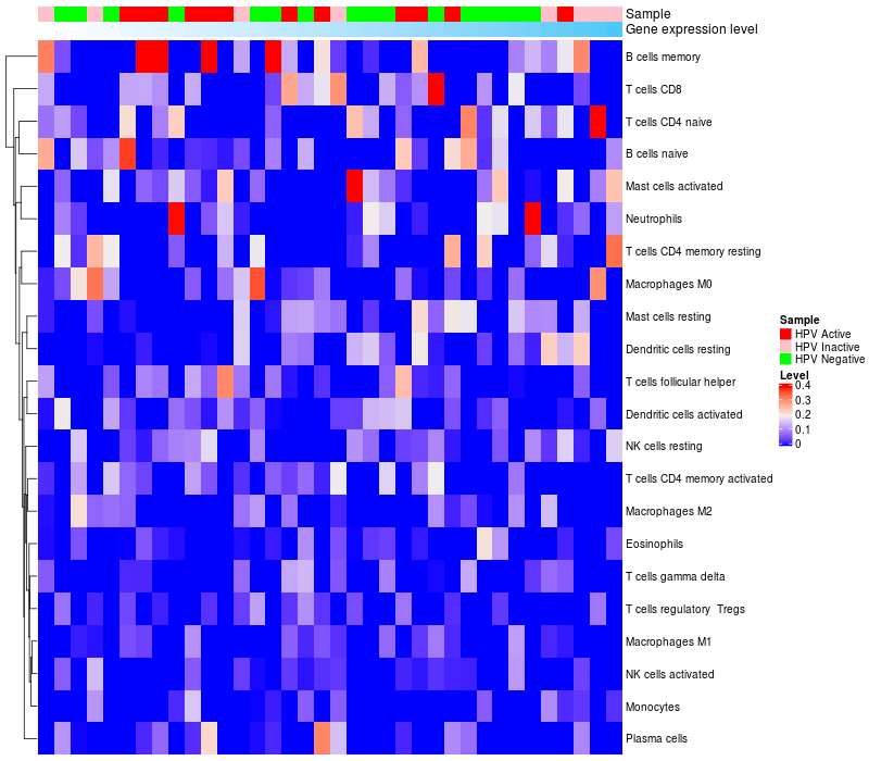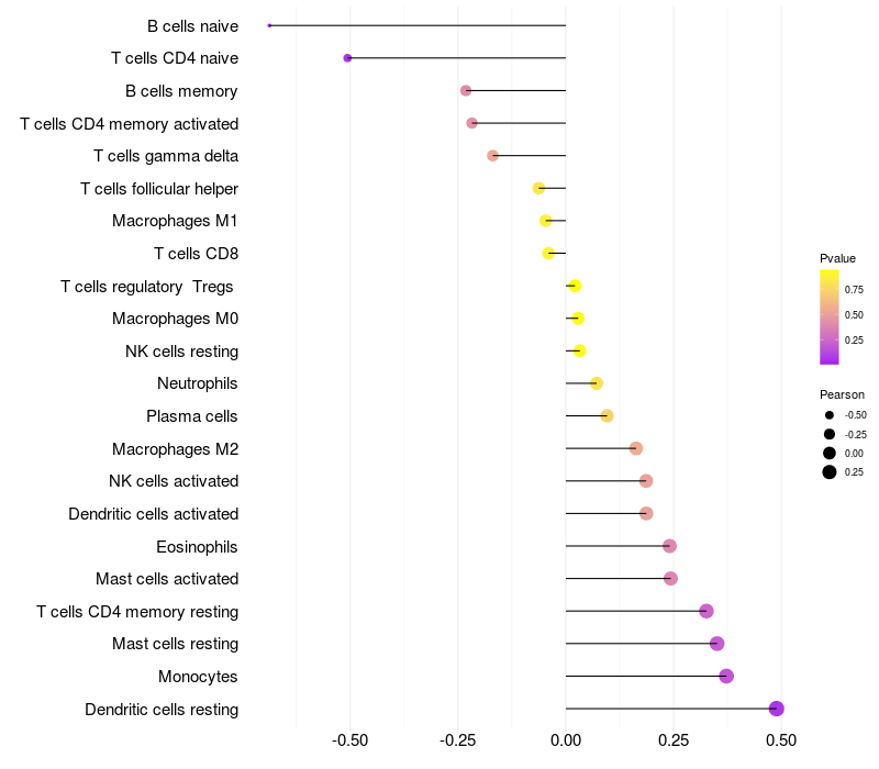 Lollipop of XG expression and immune infiltrating cell level correlation result in HPV+ samples