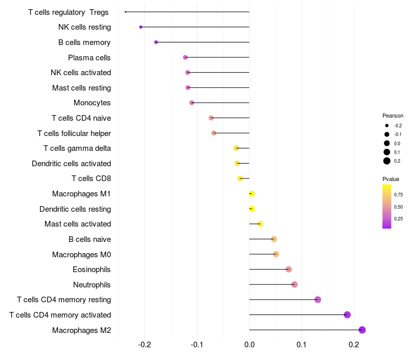 Lollipop of XIAP expression and immune infiltrating cell level correlation result in HBV+ samples