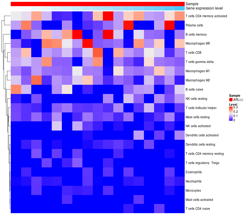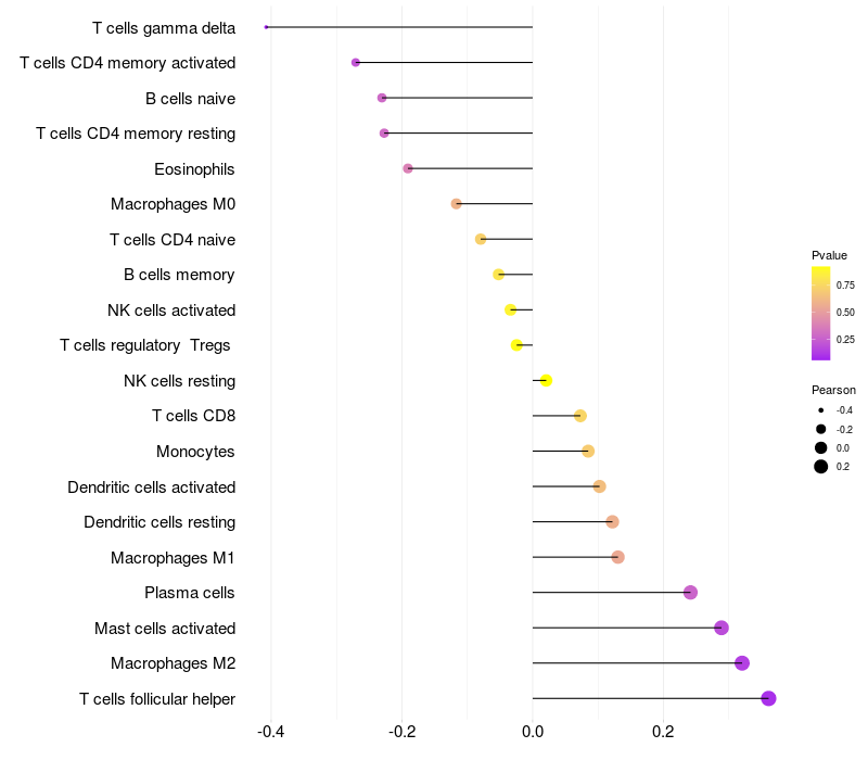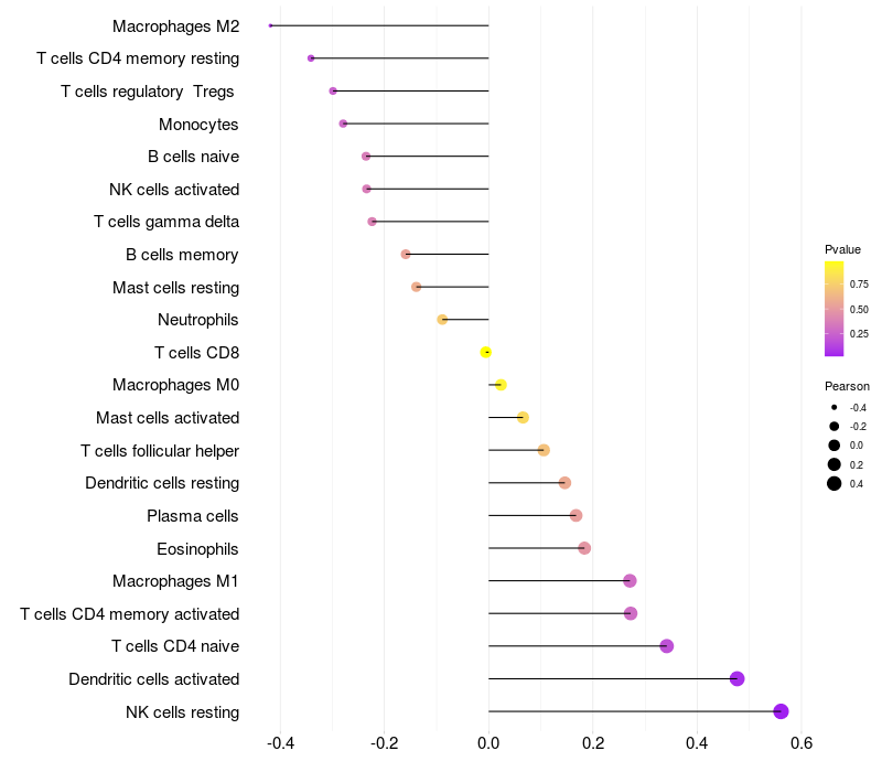 Relationship between gene expression and immune infiltrating cell level