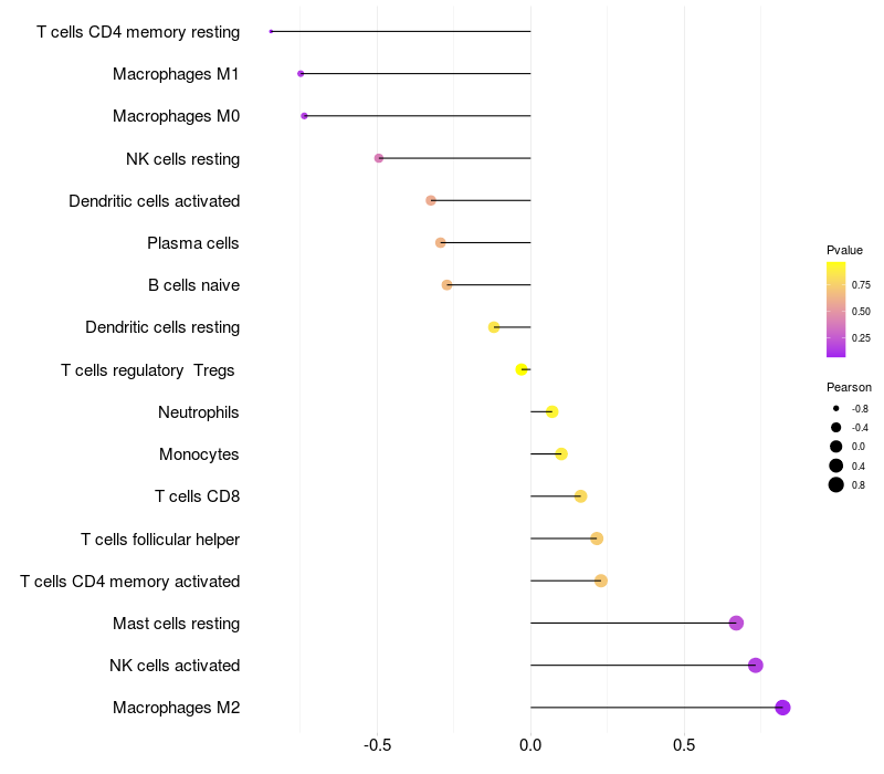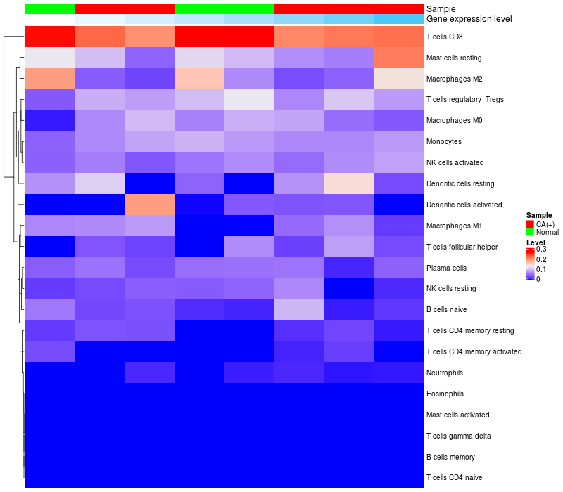 Relationship between gene expression and immune infiltrating cell level