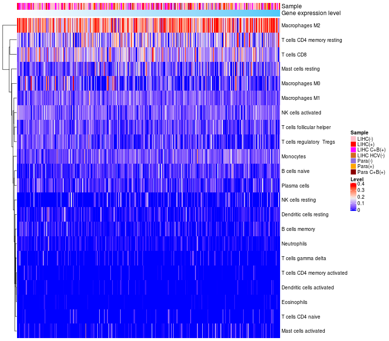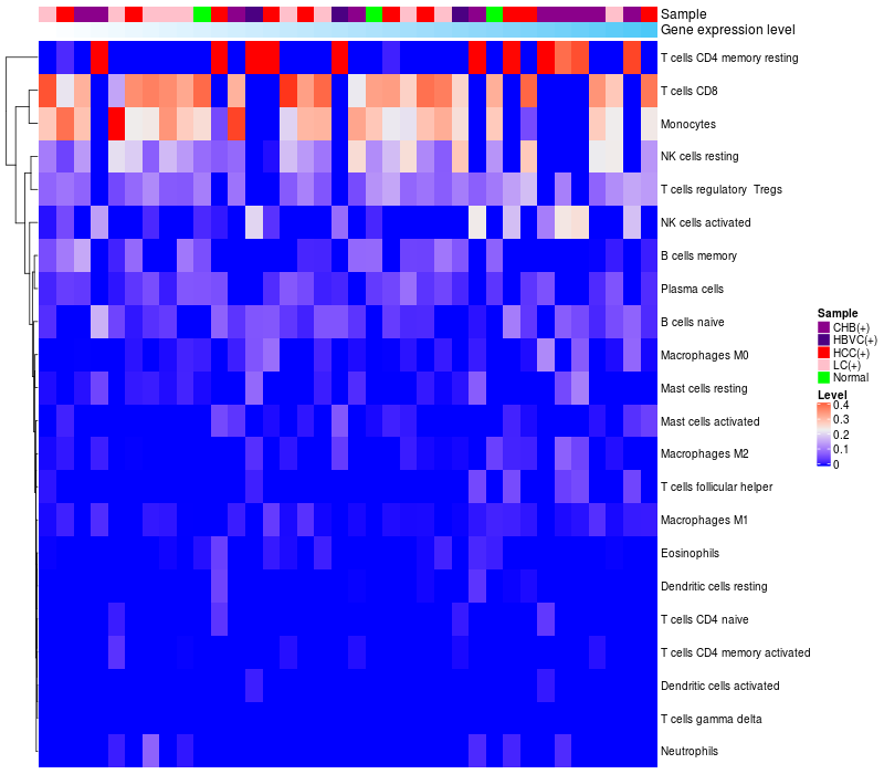 Relationship between gene expression and immune infiltrating cell level